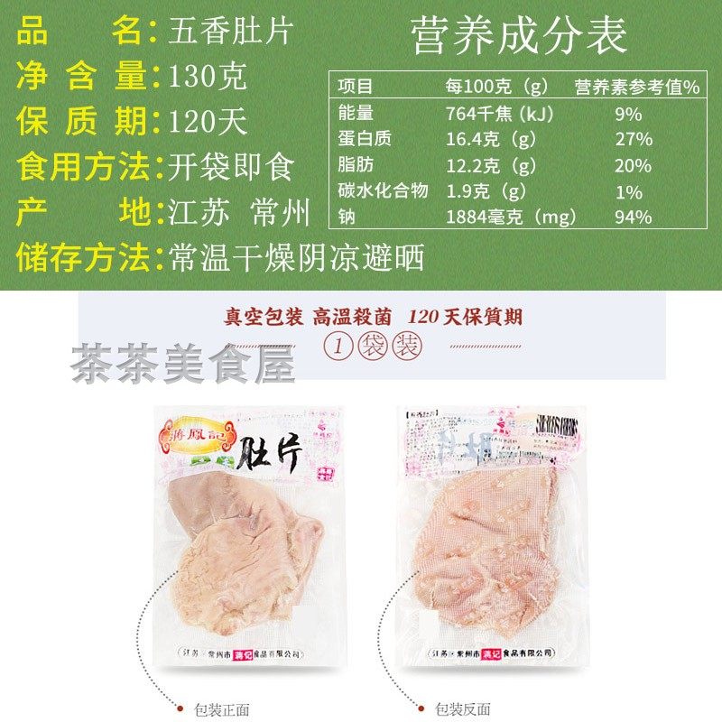 📚 蒋凤记五香肚片猪肚熟食卤菜特色下酒菜开袋即食冷菜真空速食130g