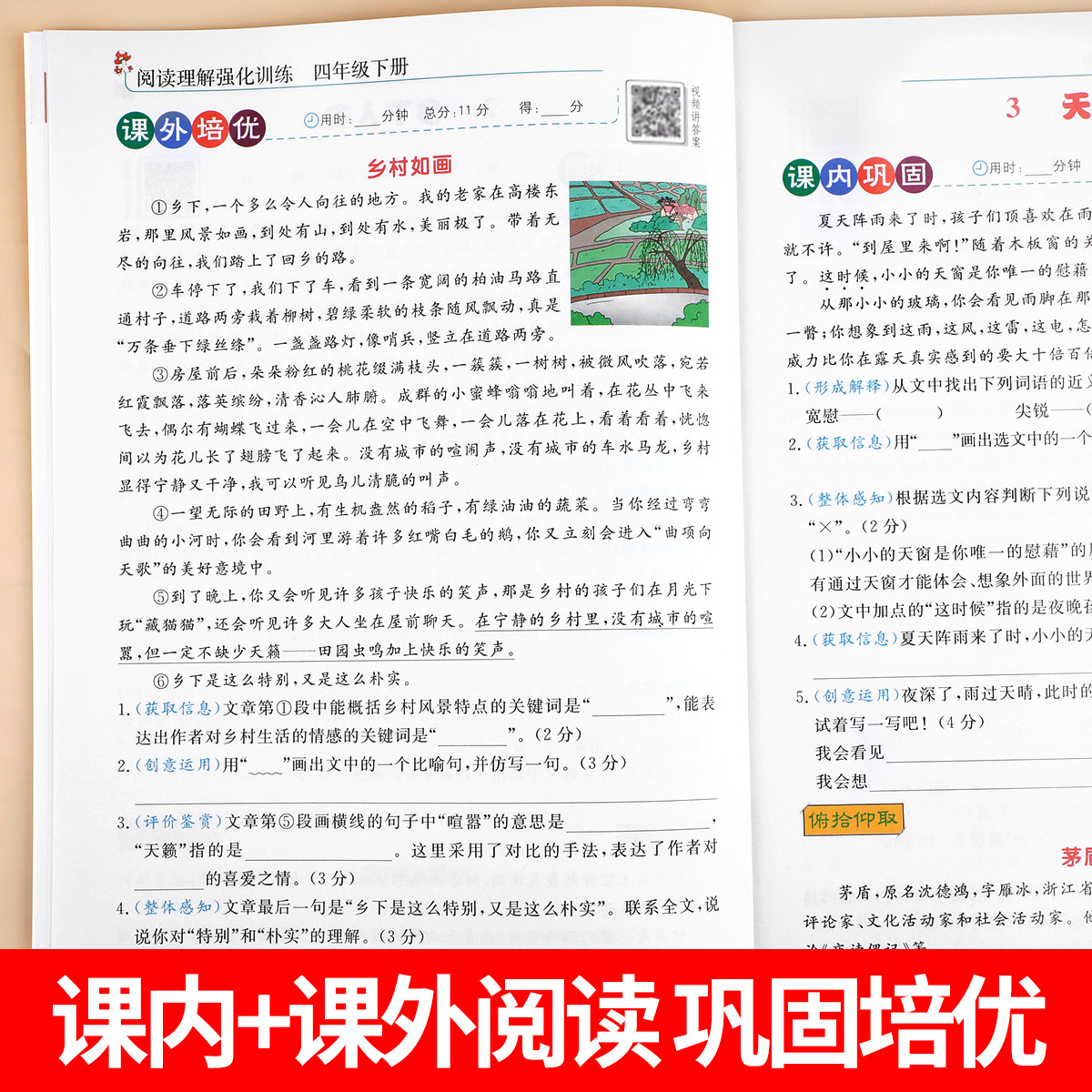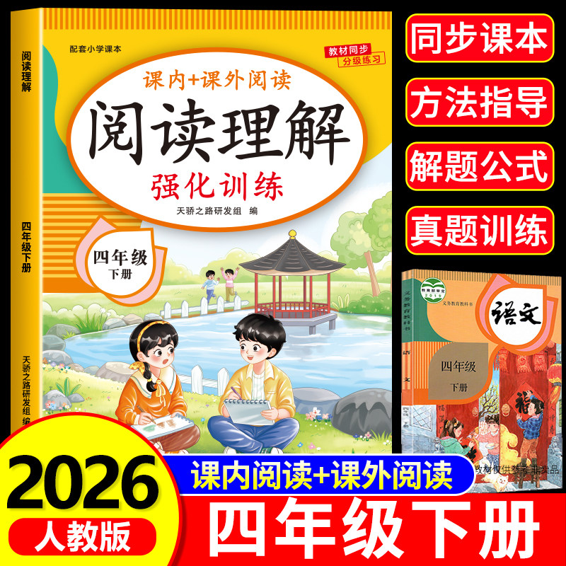 📚 2026新版 四年级语文阅读理解专项训练书下册人教版小学4年级下课内外阅读强化训练真题100篇公式法答题技巧阅读理解每日一练RJ