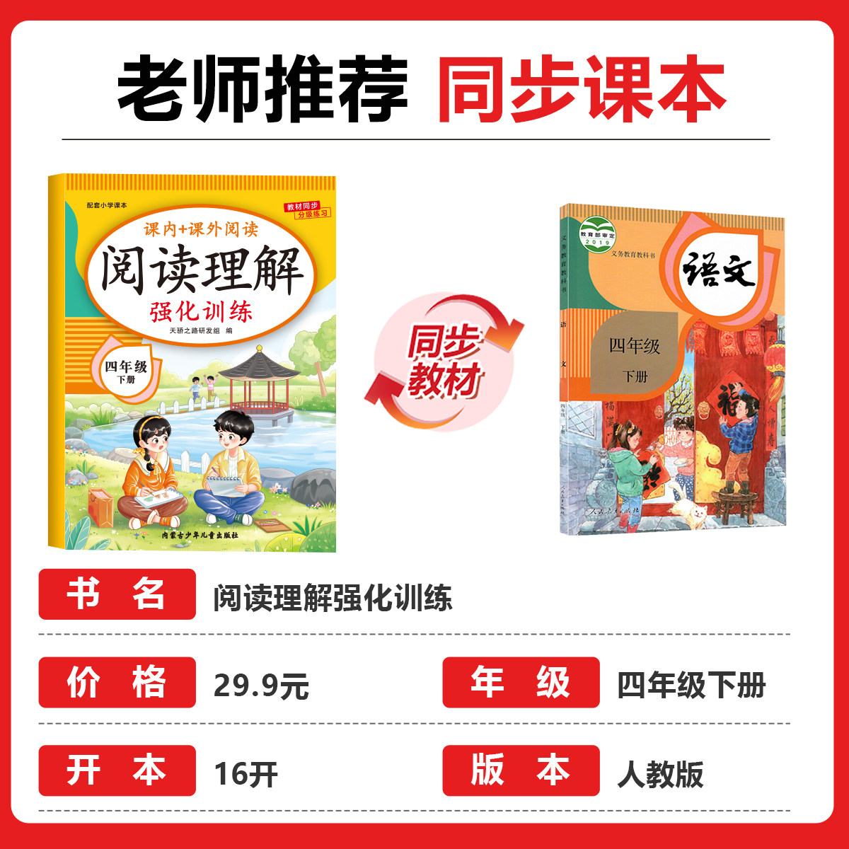 67¥ CZ005 21d9UQXZep1¥ https://m.tb.cn/h.7tjTMWI 2026新版 四年级语文阅读理解专项训练书下册人教版小学4年级下课内外阅读强化训练真题100篇公式法答题技巧阅读理解每日一练RJ --------------------- 【原售价】29.8元 【现售价】19.8元。