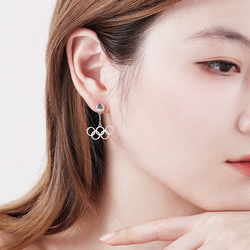 📚 奥林匹克五环银耳钉耳坠轻奢气质耳饰送女友生日新年礼物奥运周边