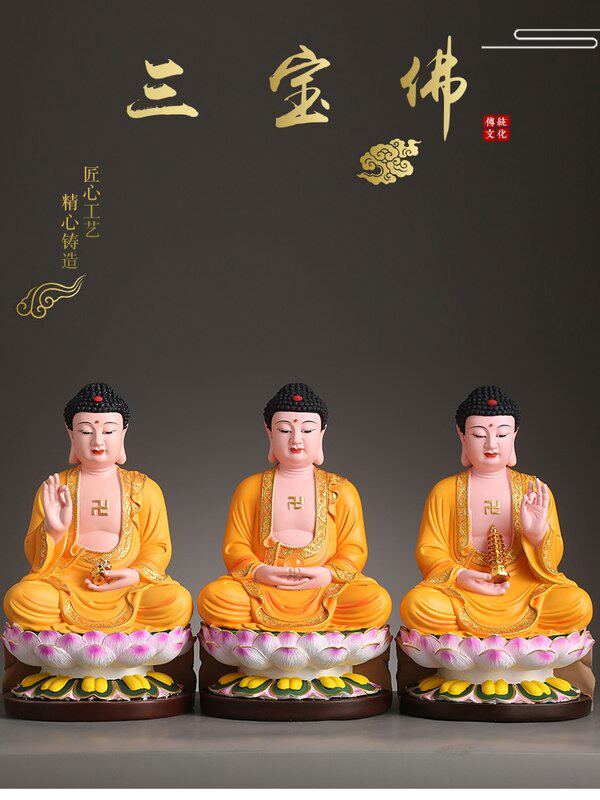 📚 三世佛佛像三宝佛释迦牟尼佛祖树脂如来佛摆件药师佛阿弥陀佛佛像