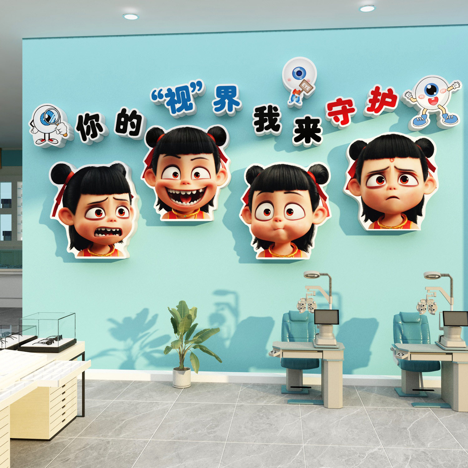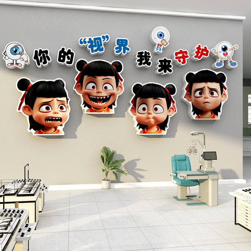 📚 眼镜睛店墙面氛围装饰挂画贴纸广告海报视光中心科普文化哪吒形象