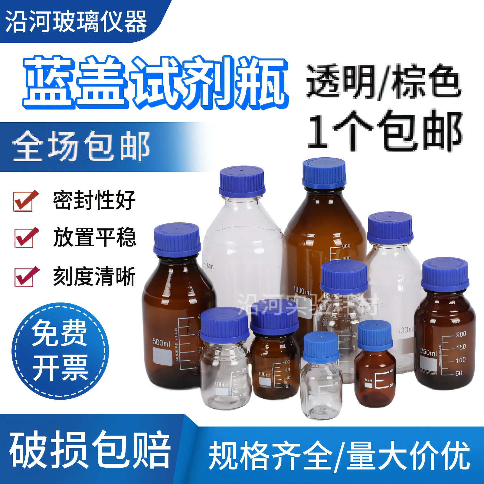 📚 实验室玻璃蓝盖瓶螺口试剂瓶玻璃样品瓶丝口瓶100/250/500/1000ml