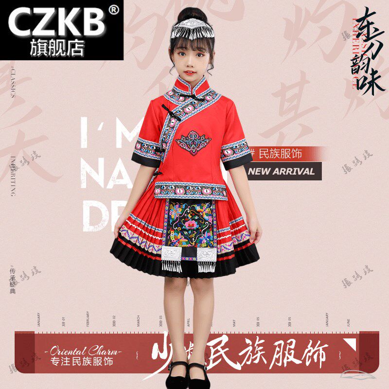📚 新款儿童仫佬族服装男女童舞蹈演出服少数民族幼儿舞台合唱表演服