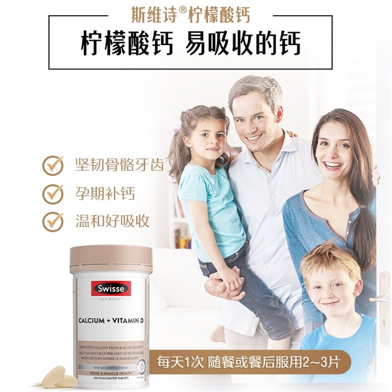 📚 【自营】Swisse斯维诗柠檬酸钙片维生素D成人钙150片柠檬酸钙