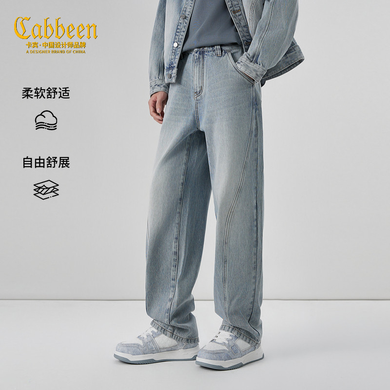 📚 【明线分割】卡宾复古洗水耐磨牛仔裤男2026春季新款宽松直筒长裤
