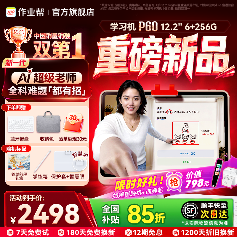 📚 【全网官旗比价】作业帮P60学习机新AI超级老师学练一体机辅导练习儿童小学初中高中通用大屏护眼平板旗舰店