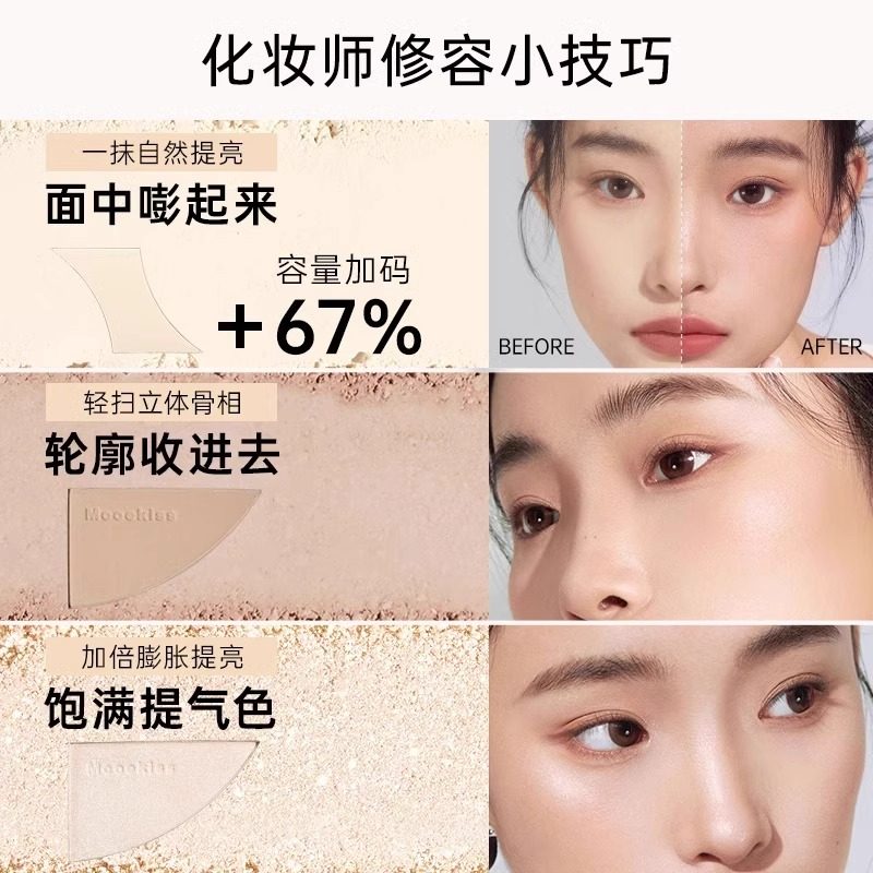 📚 陈十安三色精雕高光修容盘不脱妆哑光轮廓珠光提亮面部阴影一体盘