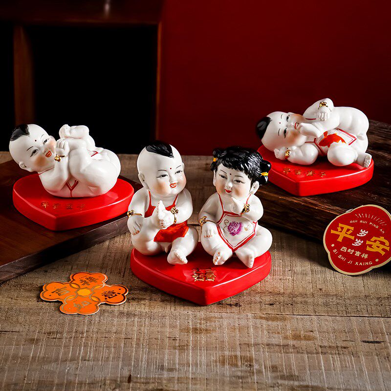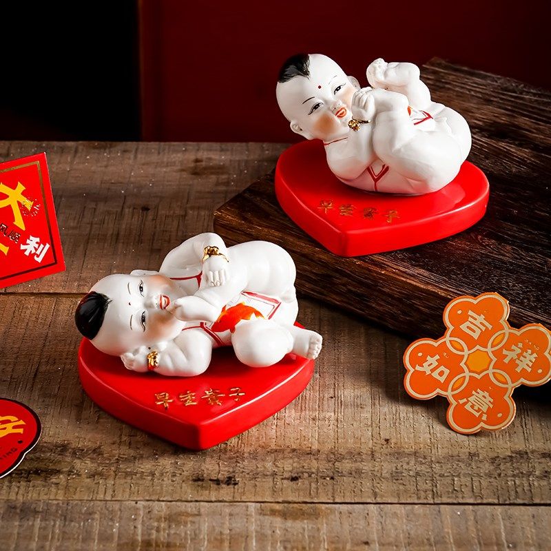 📚 陶瓷男女童子早生贵子爱情结晶家居装饰求子送子手工创意娃娃摆件