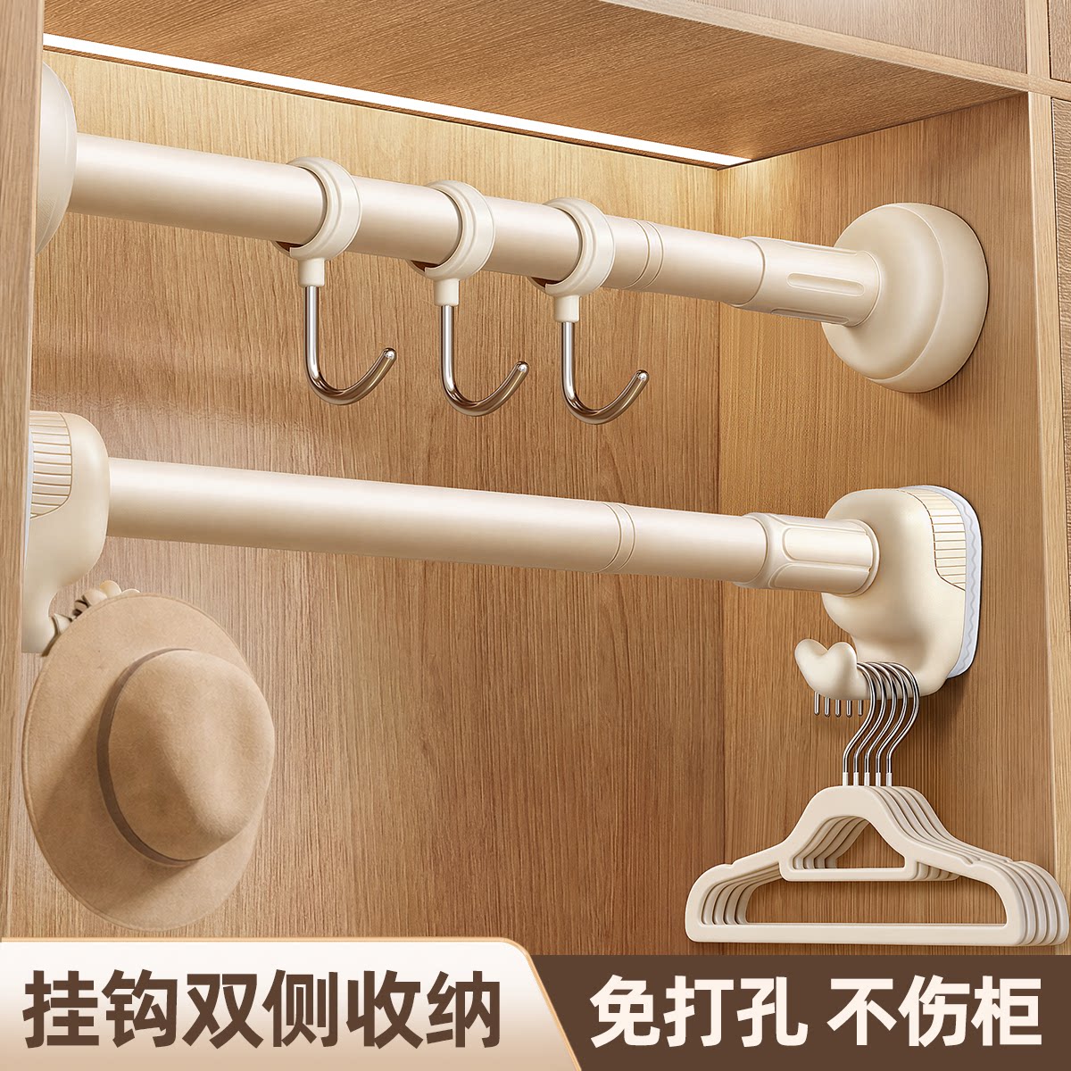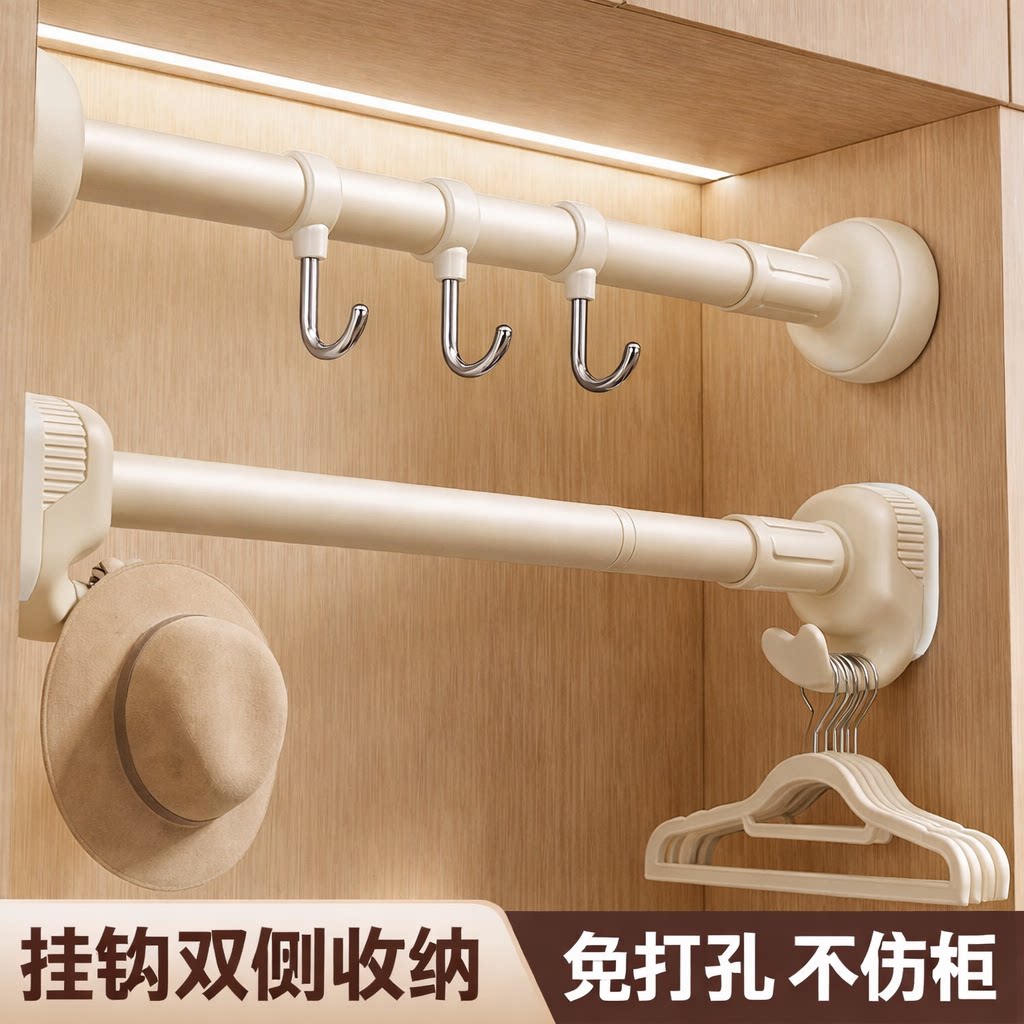 📚 衣柜挂衣杆伸缩杆免打孔不锈钢晾衣杆固定横杆衣架挂杆柜内支撑杆