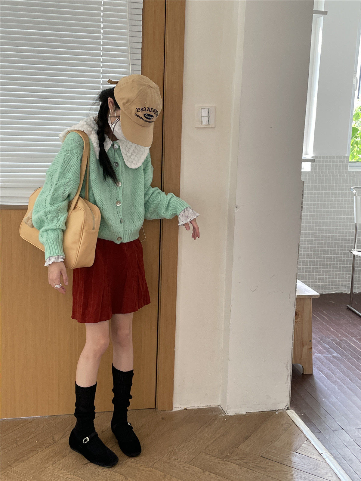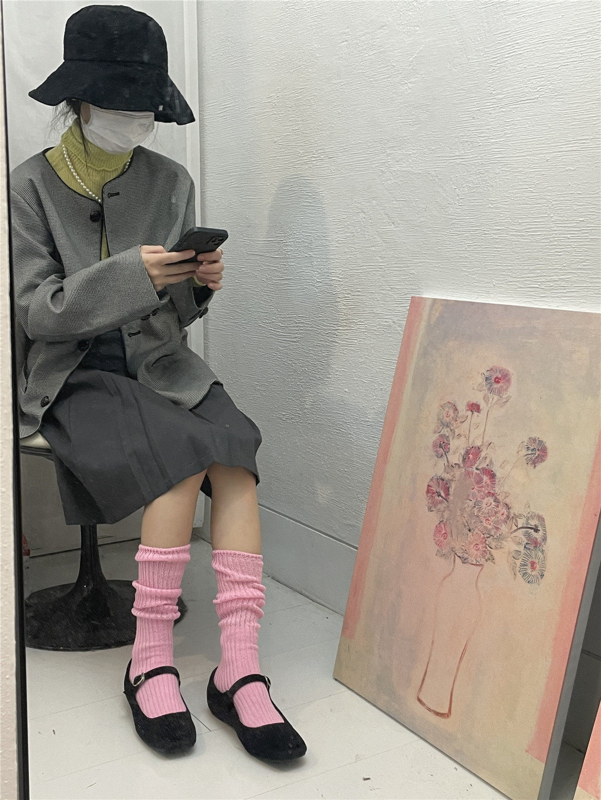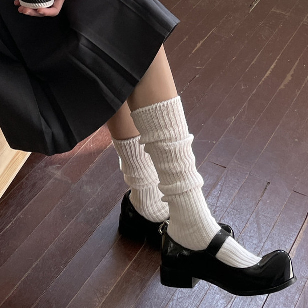 📚 AY To films 秋冬时髦网眼小腿袜加厚双针堆堆袜子白色竖条中筒袜