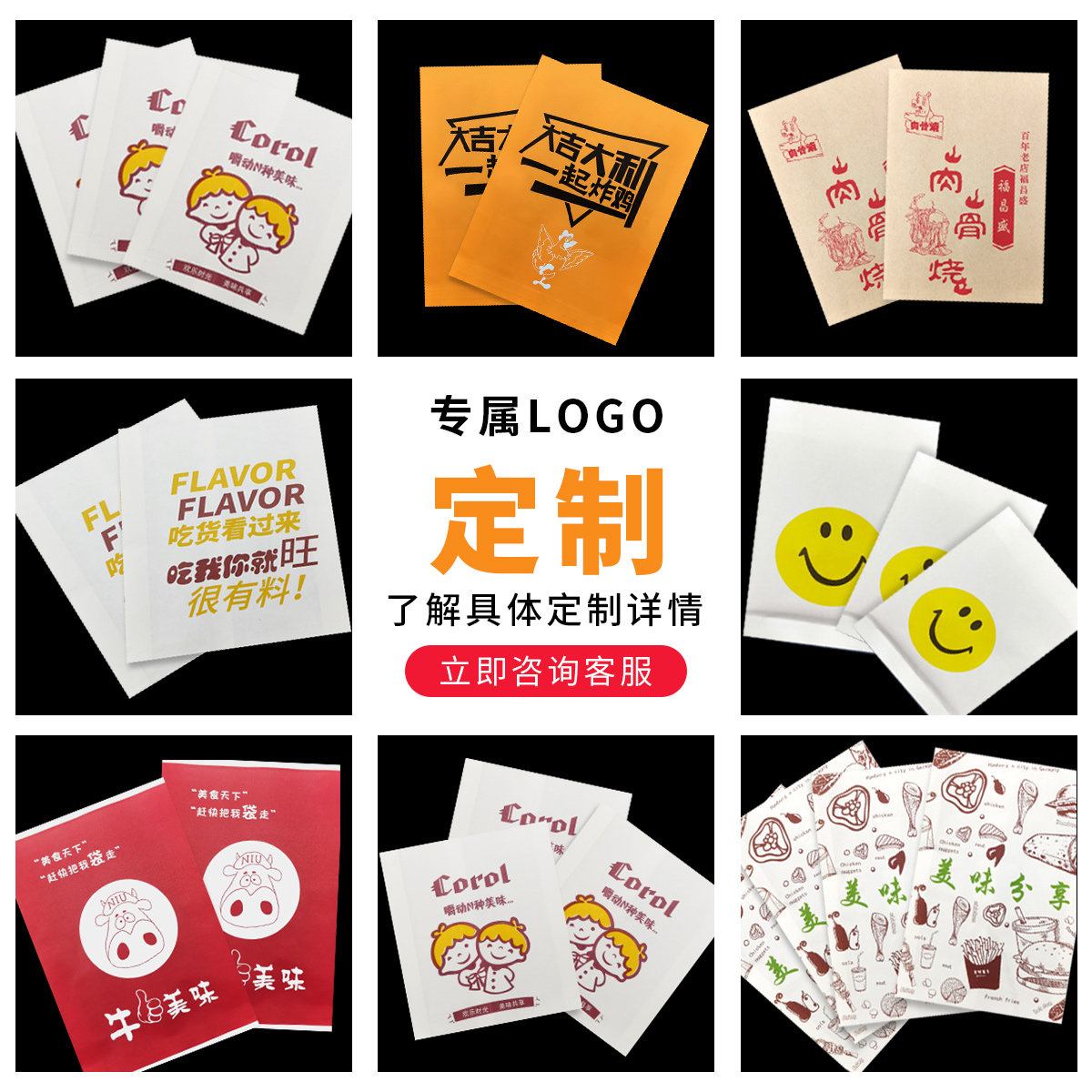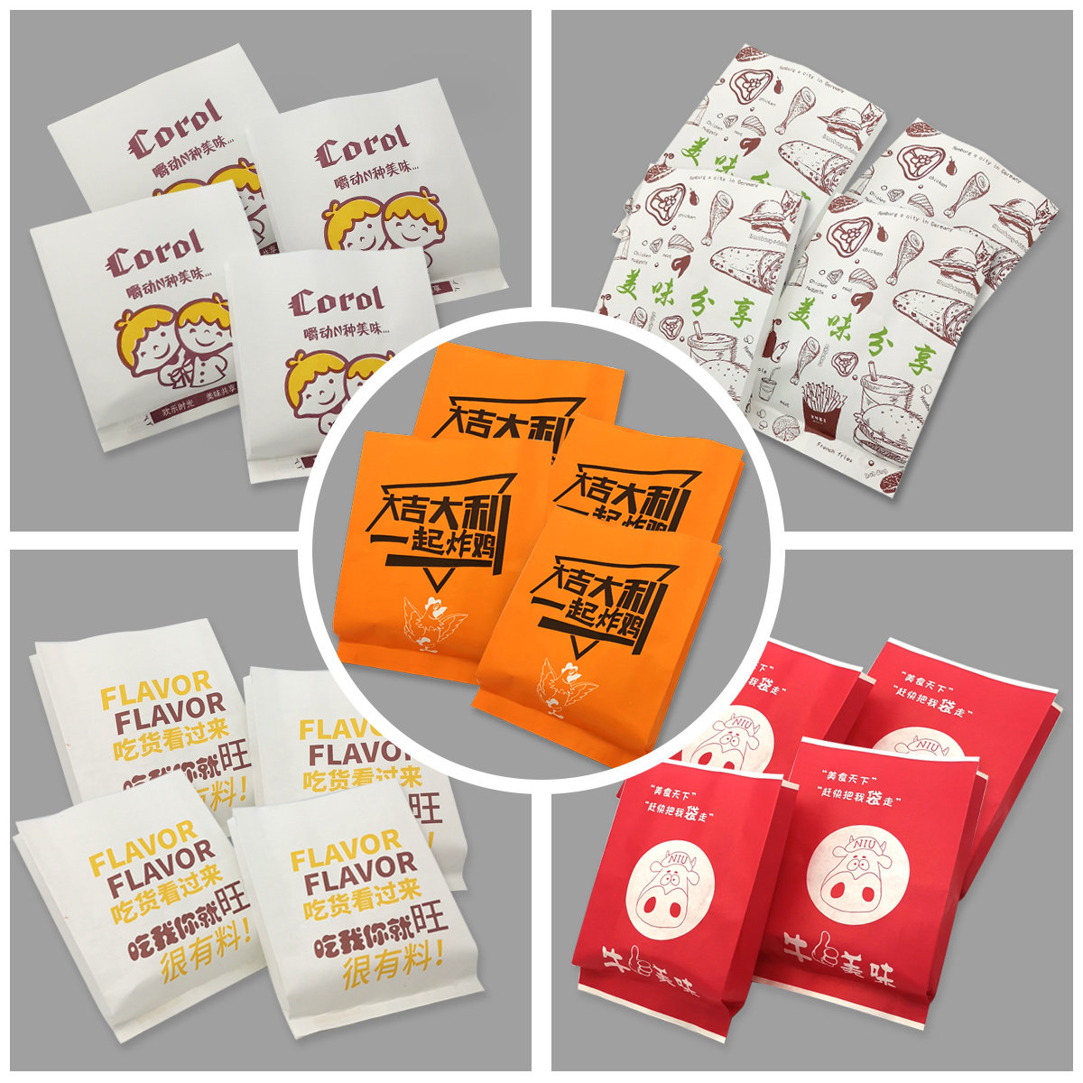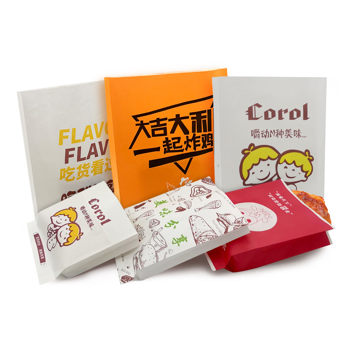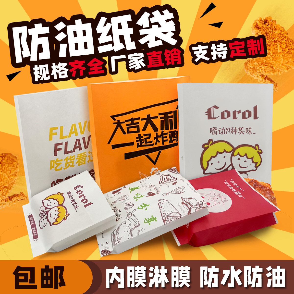 📚 笑脸防油纸袋一次性外卖鸡柳小吃打包鸡排鸡腿薯条食品包装牛皮