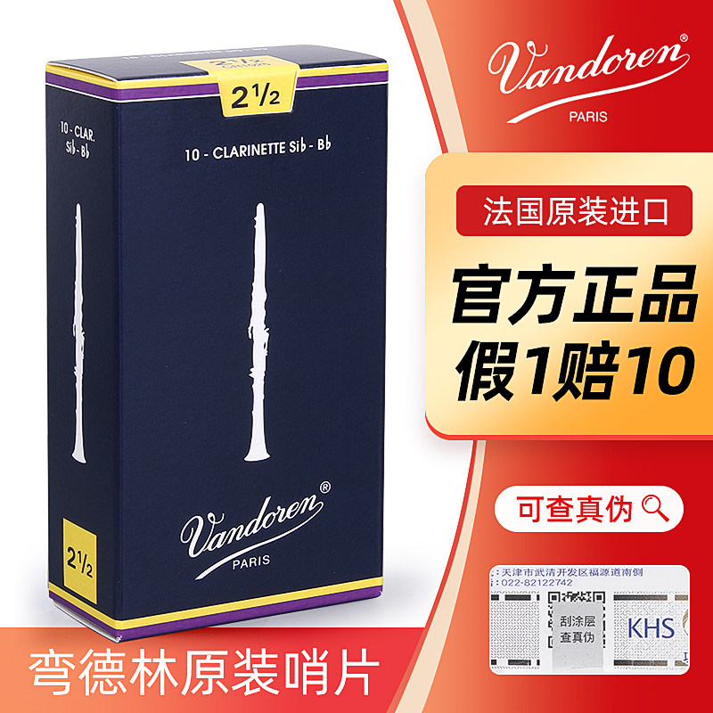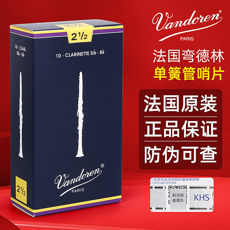 📚 法国Vandoren弯德林单簧管黑管哨片降B调进口蓝盒哨片初学2.5号3