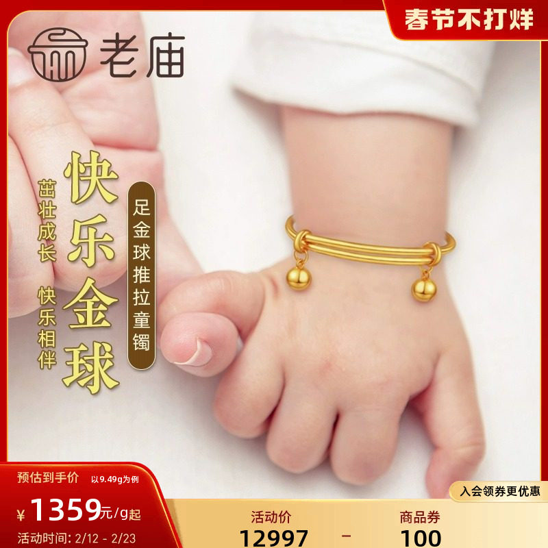 📚 老庙黄金足金推拉手镯宝宝满月金饰初生礼物小金球小众童趣送礼