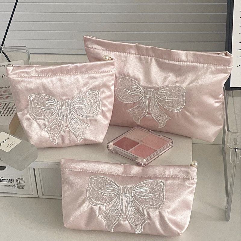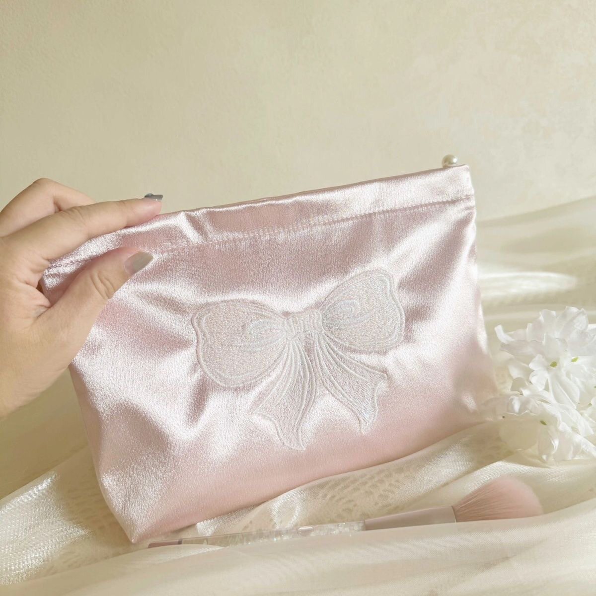 📚 ins蝴蝶结甜美化妆包小众布艺收纳袋钱包内胆包外出洗漱包手拿包
