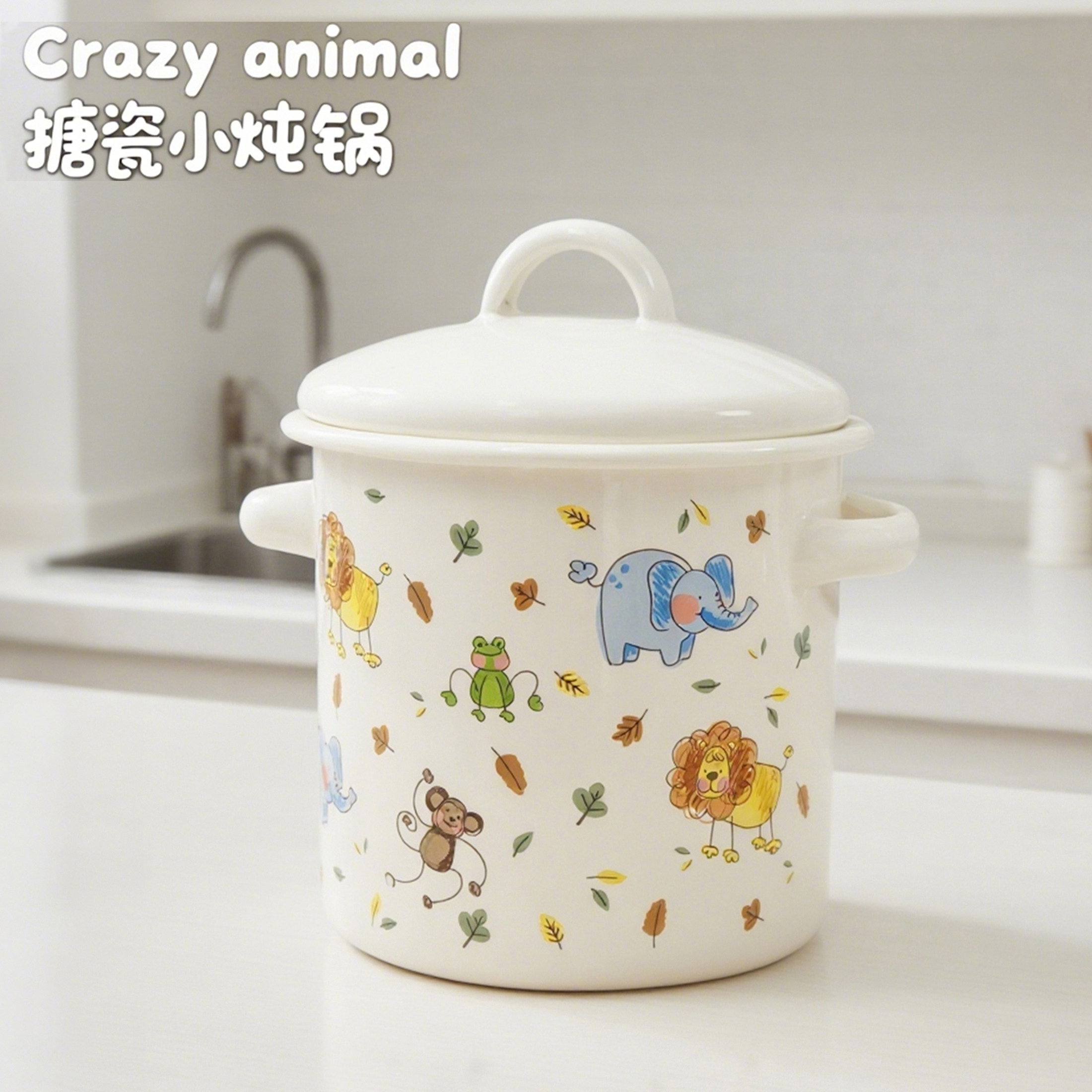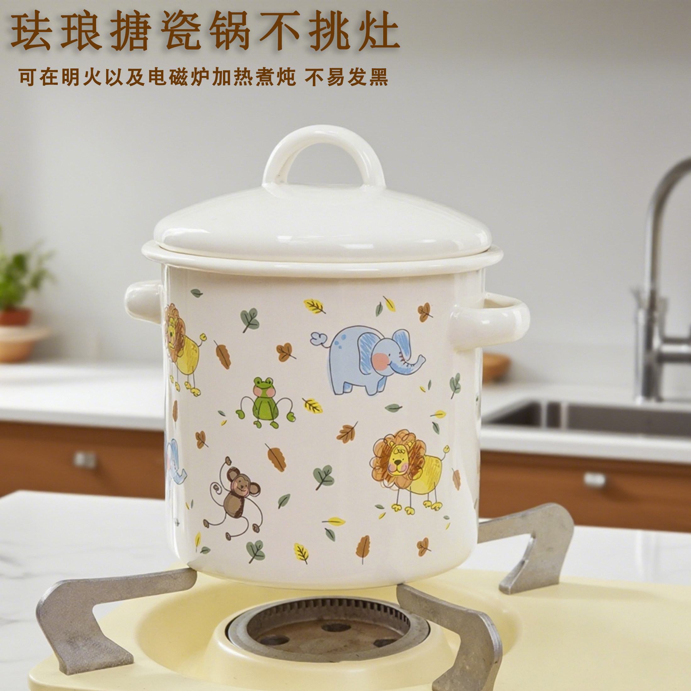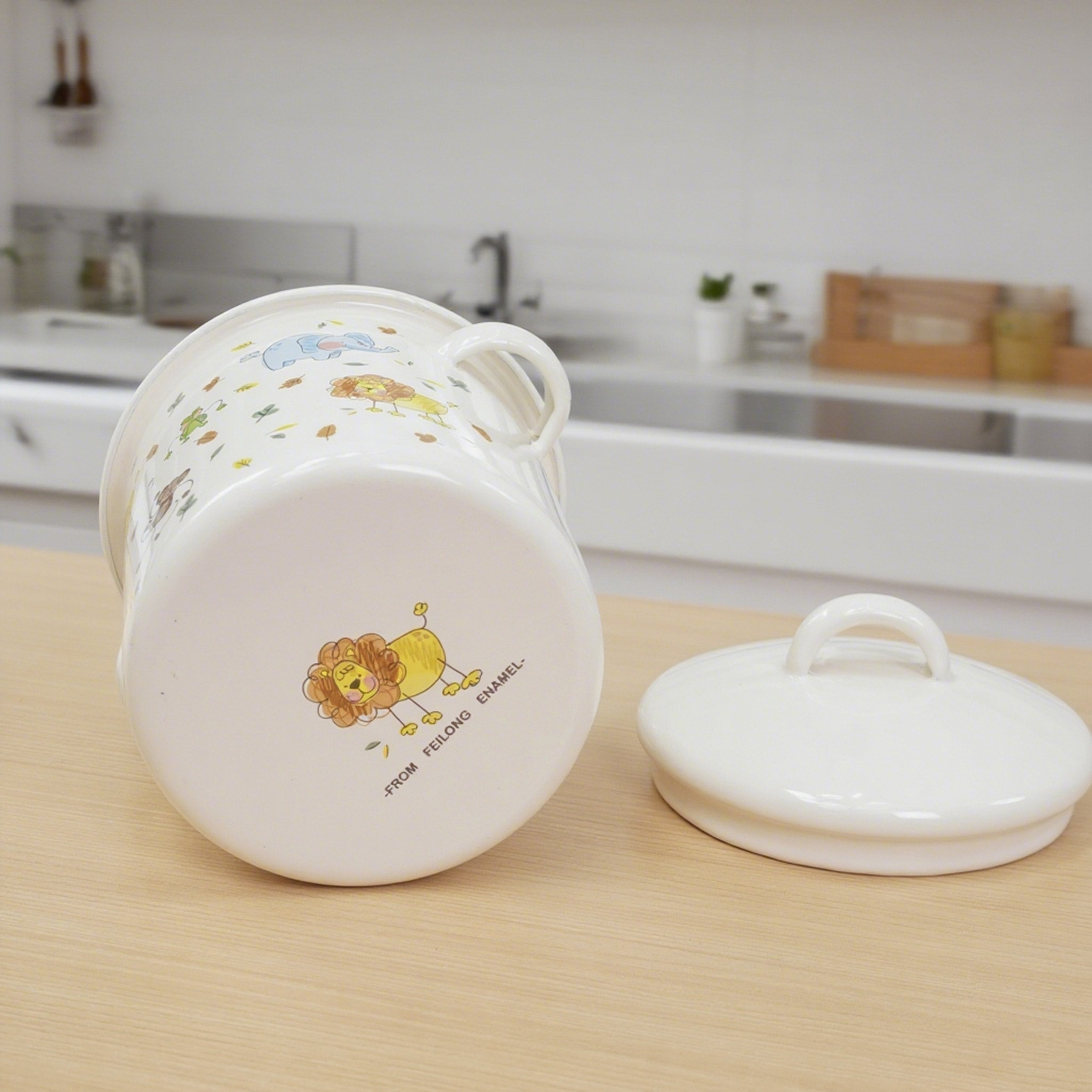 📚 搪瓷泡面锅汤锅猪油罐迷你炖盅调味罐储物复古带盖罐子泡面小锅子