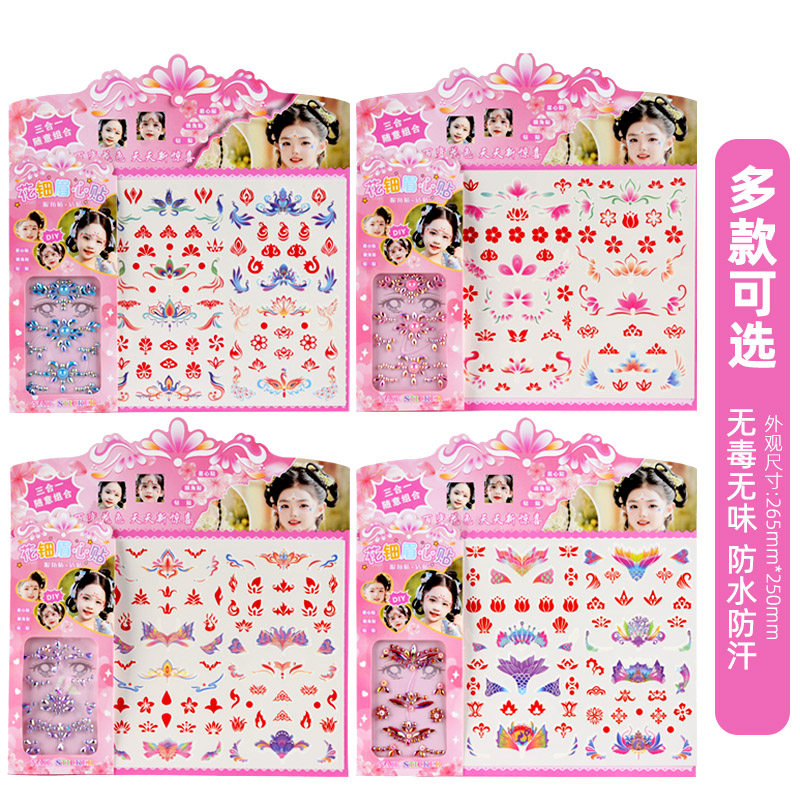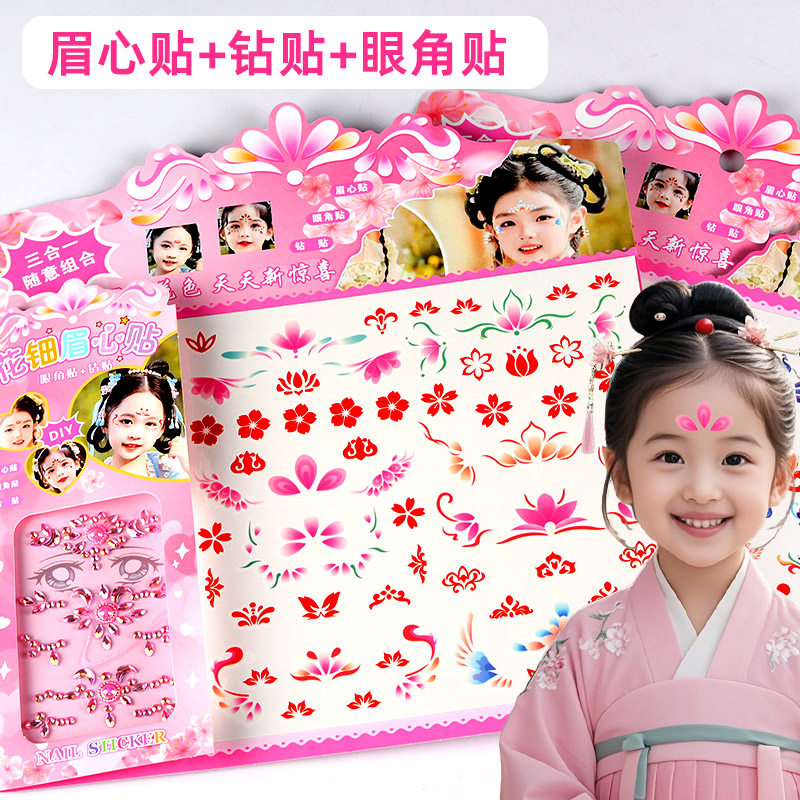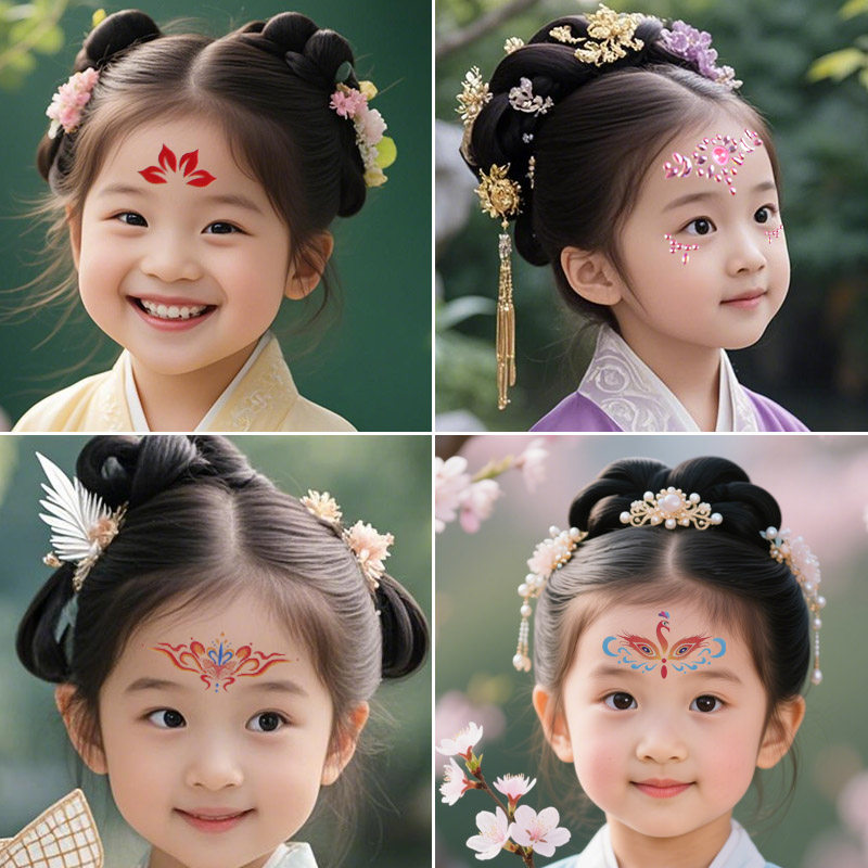 📚 古风眉心贴纸儿童女孩舞台化妆额头钻石宝石装饰纹身贴画无毒无味