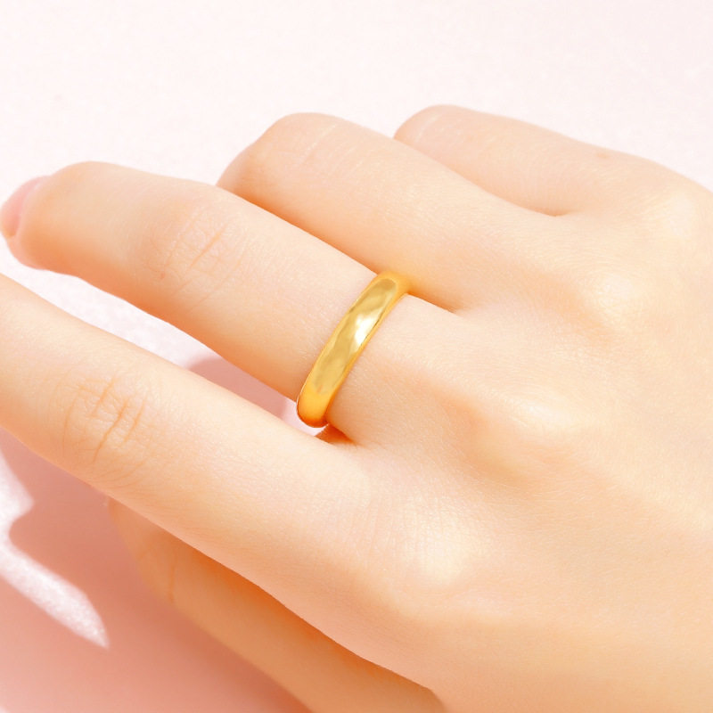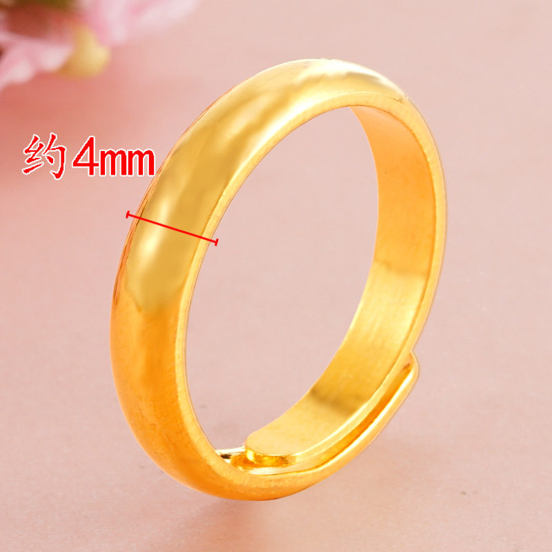 📚 越南沙金古法情侣戒指仿真黄金色久不掉色实心磨砂男女素圈指环