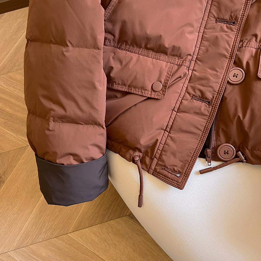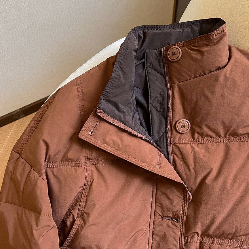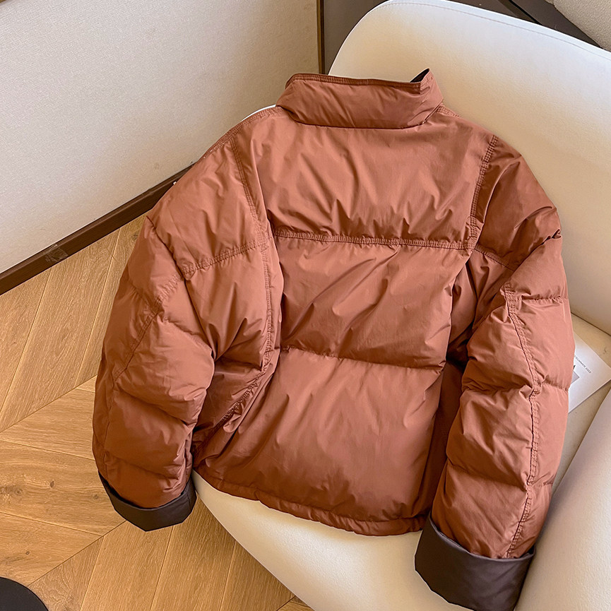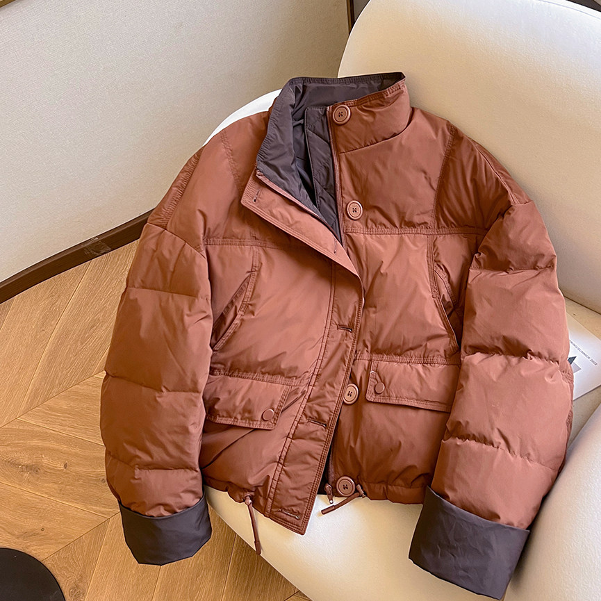 📚 小C家 立领撞色加厚白鸭绒外套女2025冬季款时尚小个子宽松羽绒服