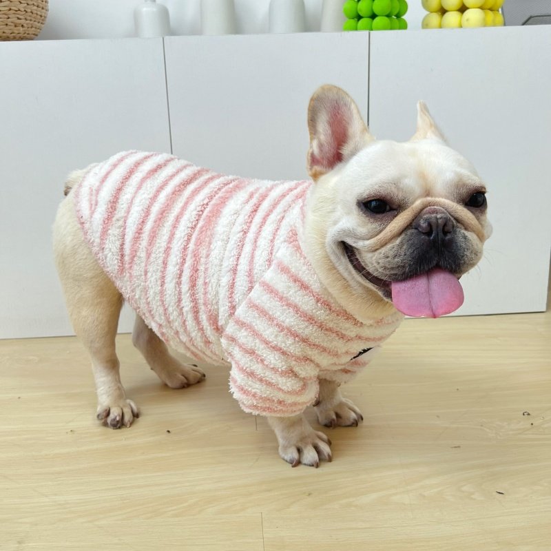 📚 狗狗衣服秋冬装加绒加厚保暖条纹卫衣法斗巴哥斗牛犬大码宠物衣服