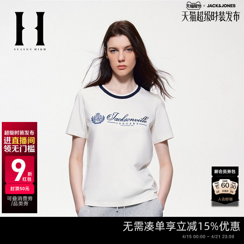 📚 SEASON HIGH春季NFL联名胸前杰克逊维尔美洲虎队刺绣T恤女装
