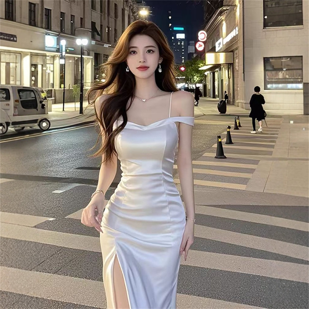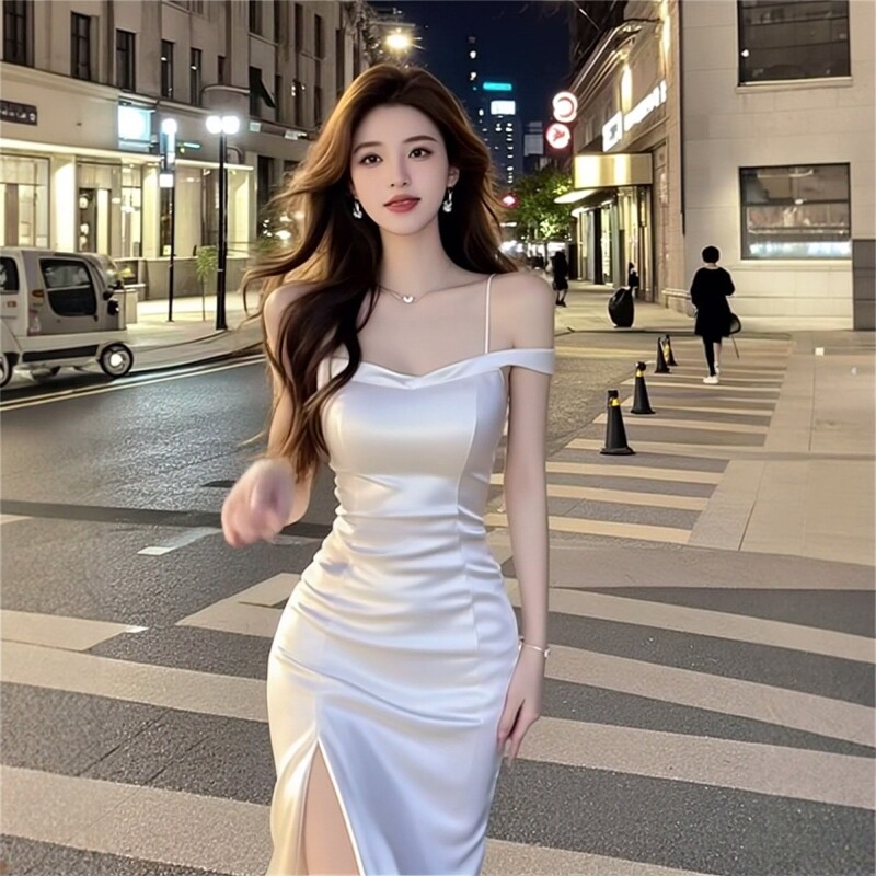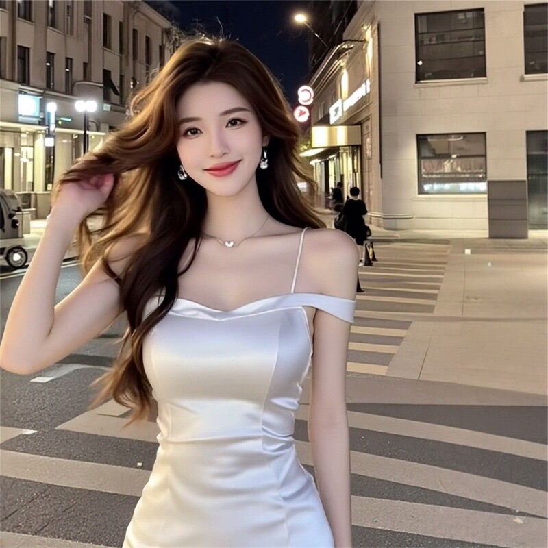 📚 温柔初恋感白色吊带裙气质穿搭显瘦温柔风夏季小白裙长裙连衣裙