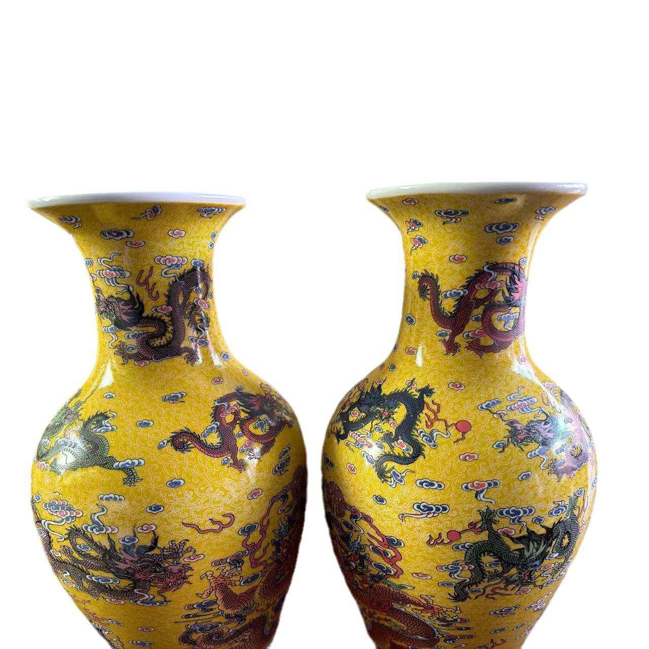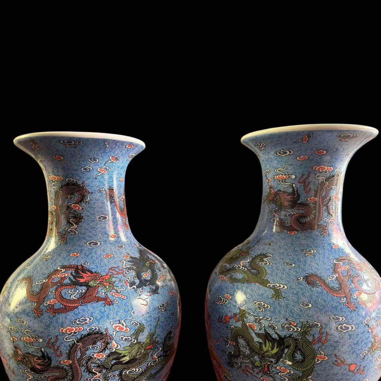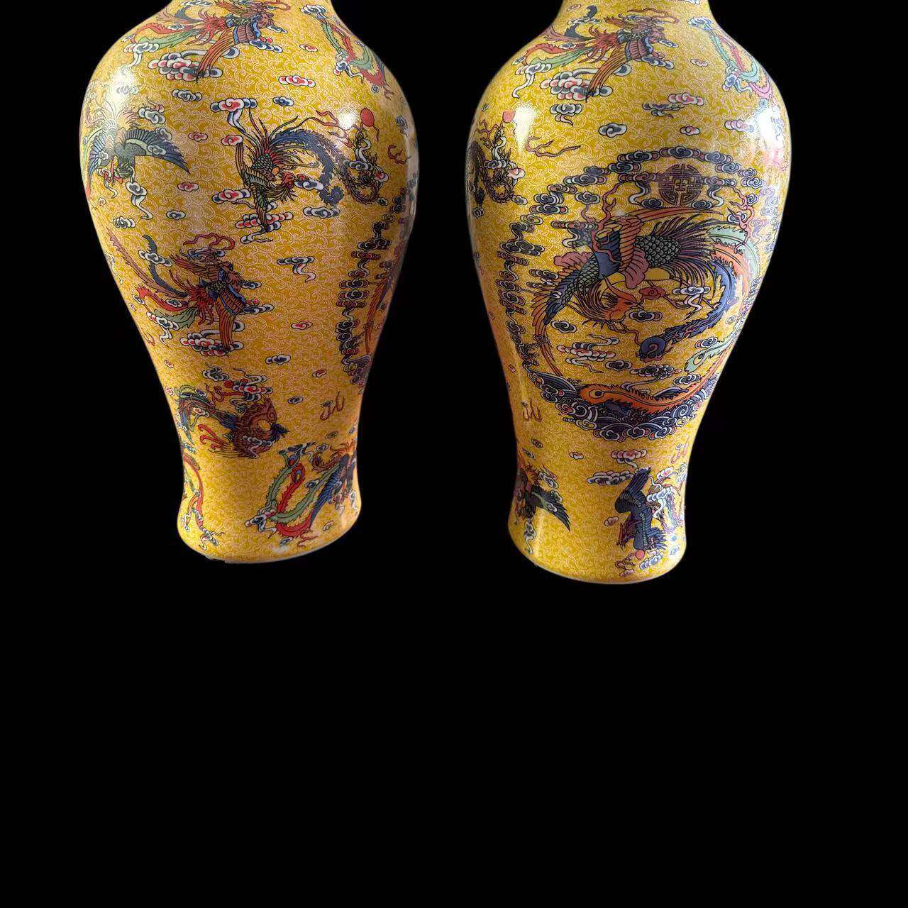 📚 仿古花瓶摆件瓷瓶客厅玄关装饰品陶瓷器古董发夜光成对工艺品