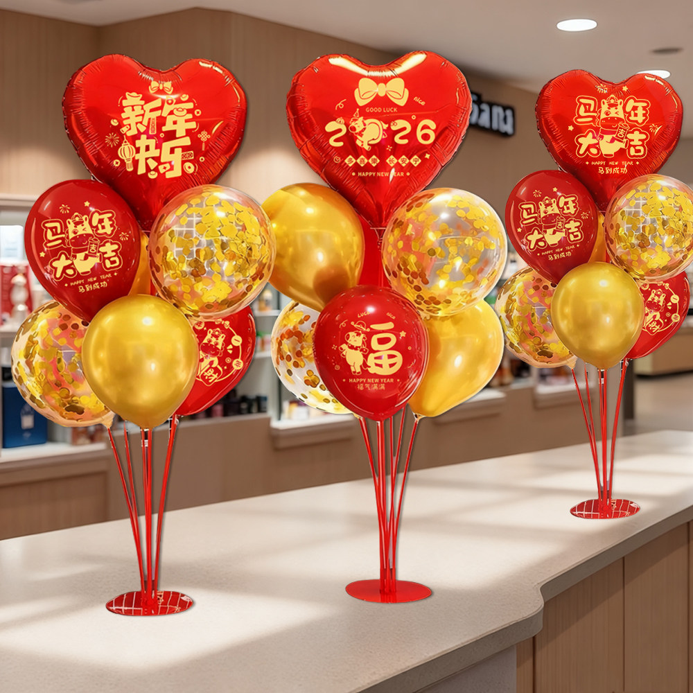 📚 2026马年春节新年气球桌飘立柱商场门店桌面摆件场景布置氛围装饰