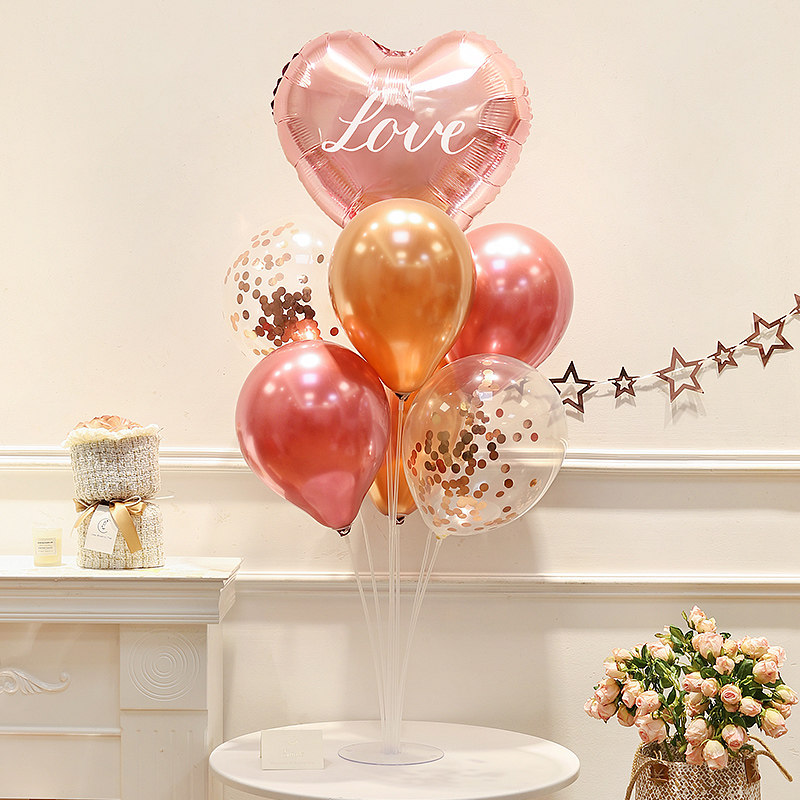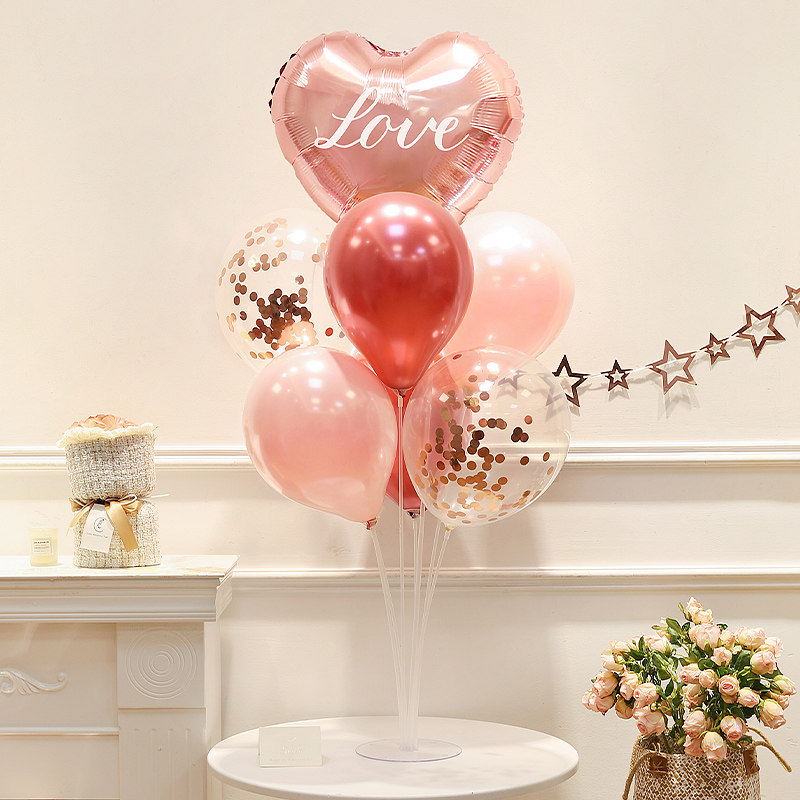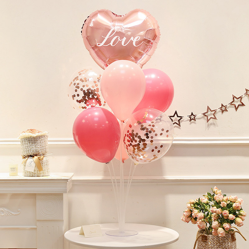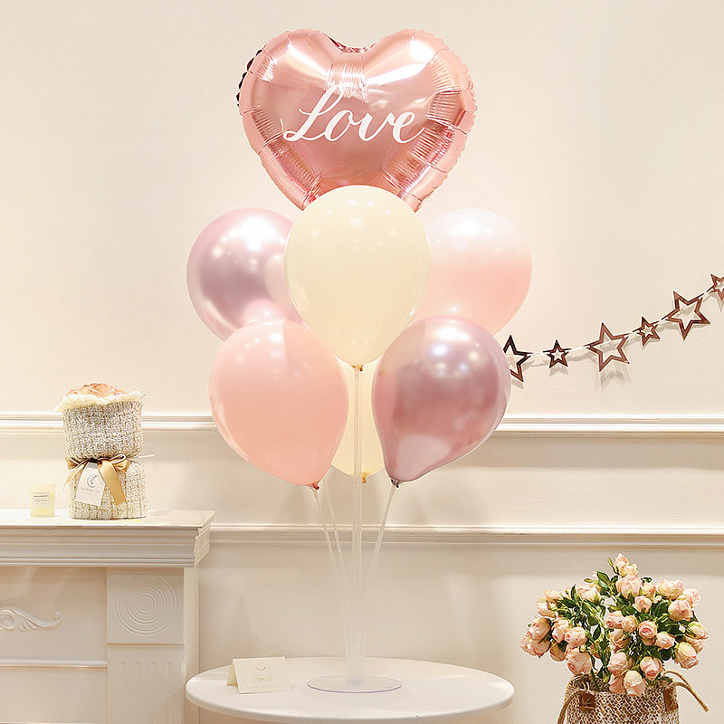 📚 情人节氛围装饰粉色爱心气球桌面摆件拍照道具求订婚结婚场景布置