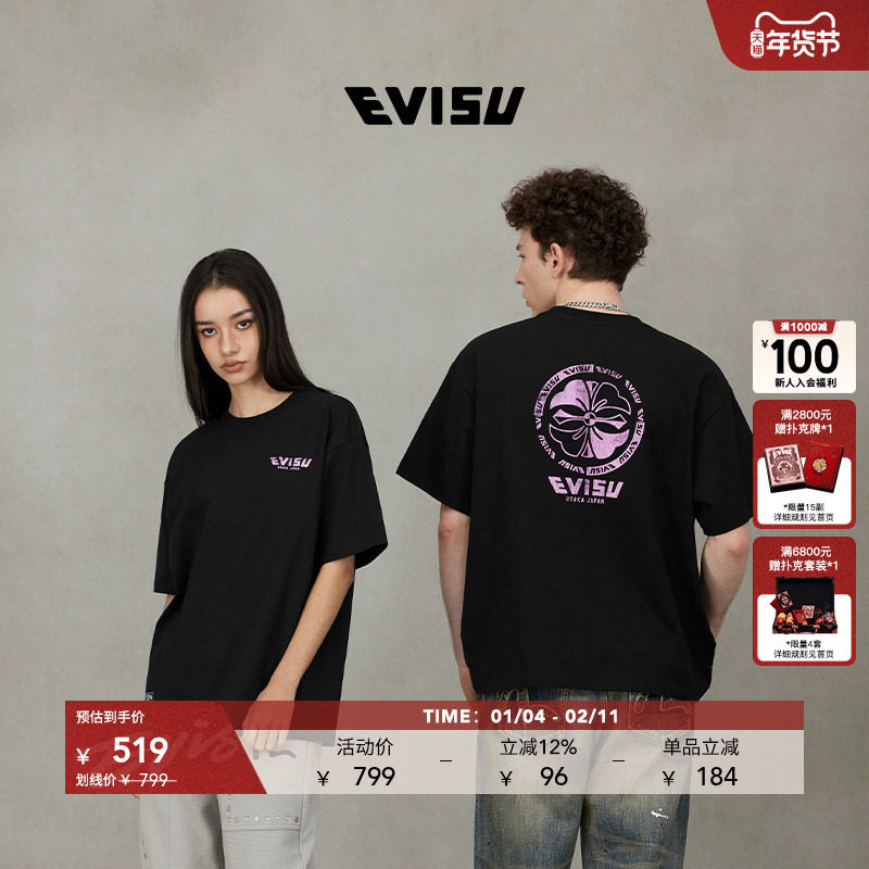 📚 EVISU福神流行休闲时尚运动男女同款印花短袖T恤
