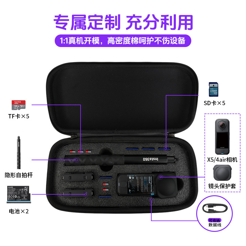 📚 适用影石Insta360 x4 Air收纳包X5/Ace Pro 2专业街拍套装Go Ultra硬壳运动相机保护盒便携配件箱手柄机身包