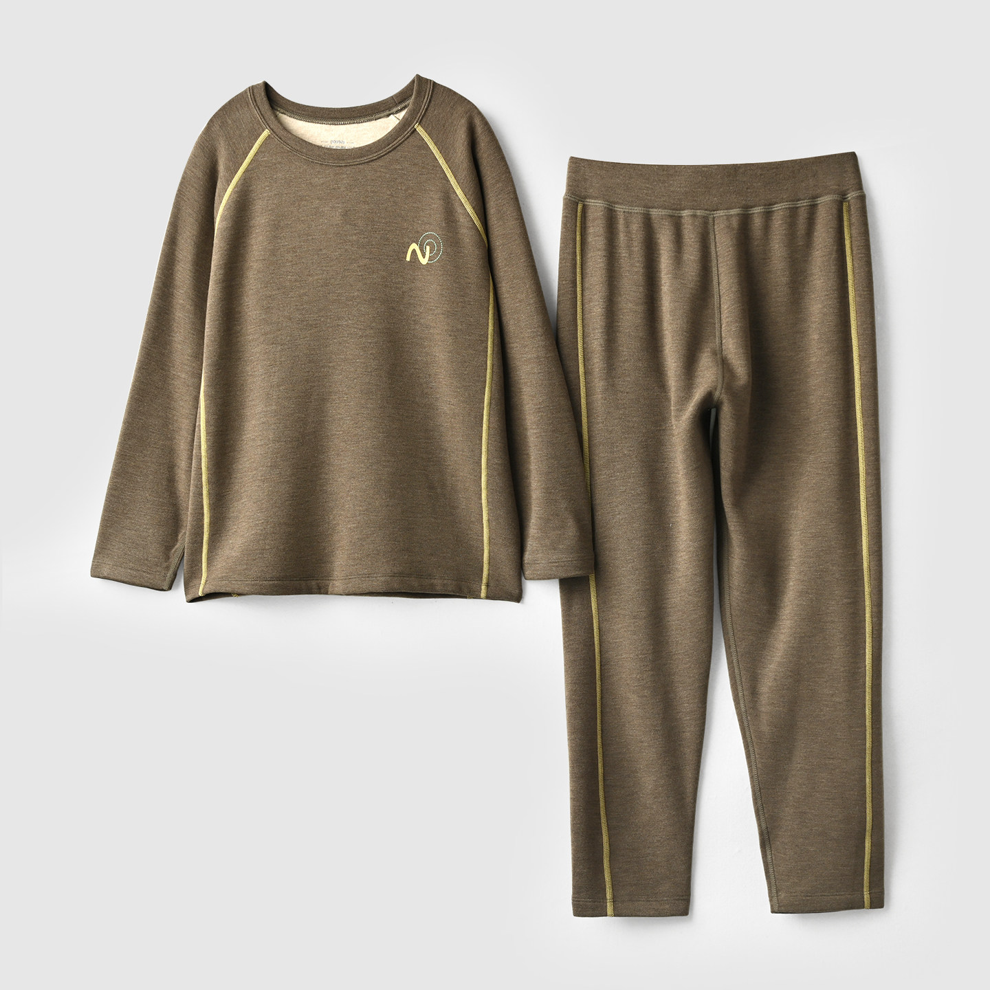 💥"男童胖童大码保暖A类330克蚕丝羊绒儿童圆领内衣套装,秋冬温暖守护神器🔥"