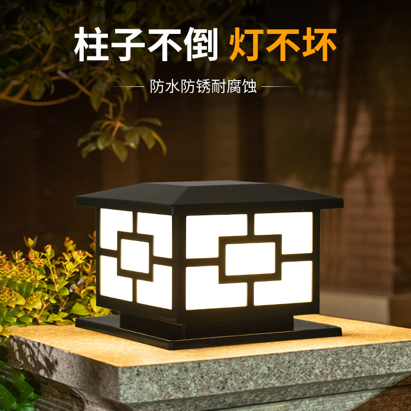 📚 太阳能柱头灯别墅大门两侧柱子灯户外庭院围墙围栏灯室外防水中式