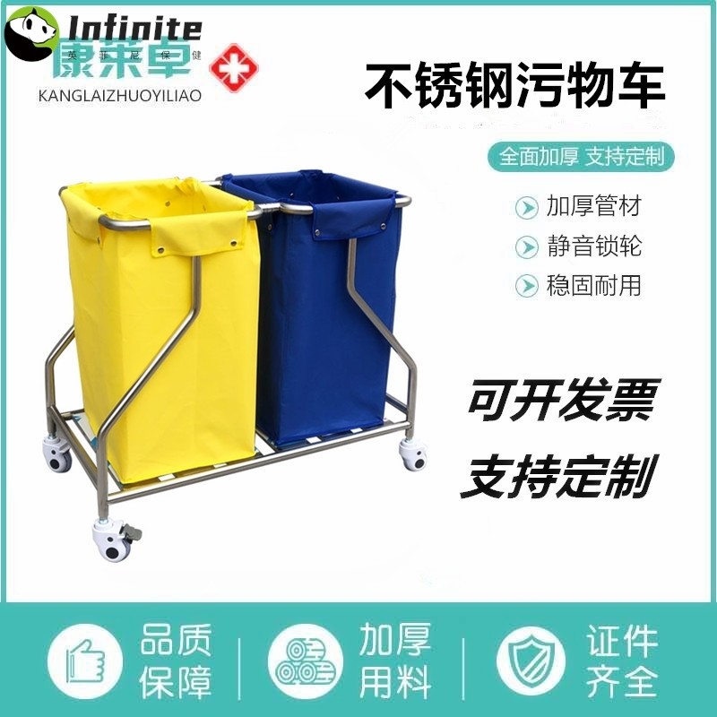 📚 医用污物车加厚不锈钢手推车扫床车清理车晨护车护理车污衣车静音