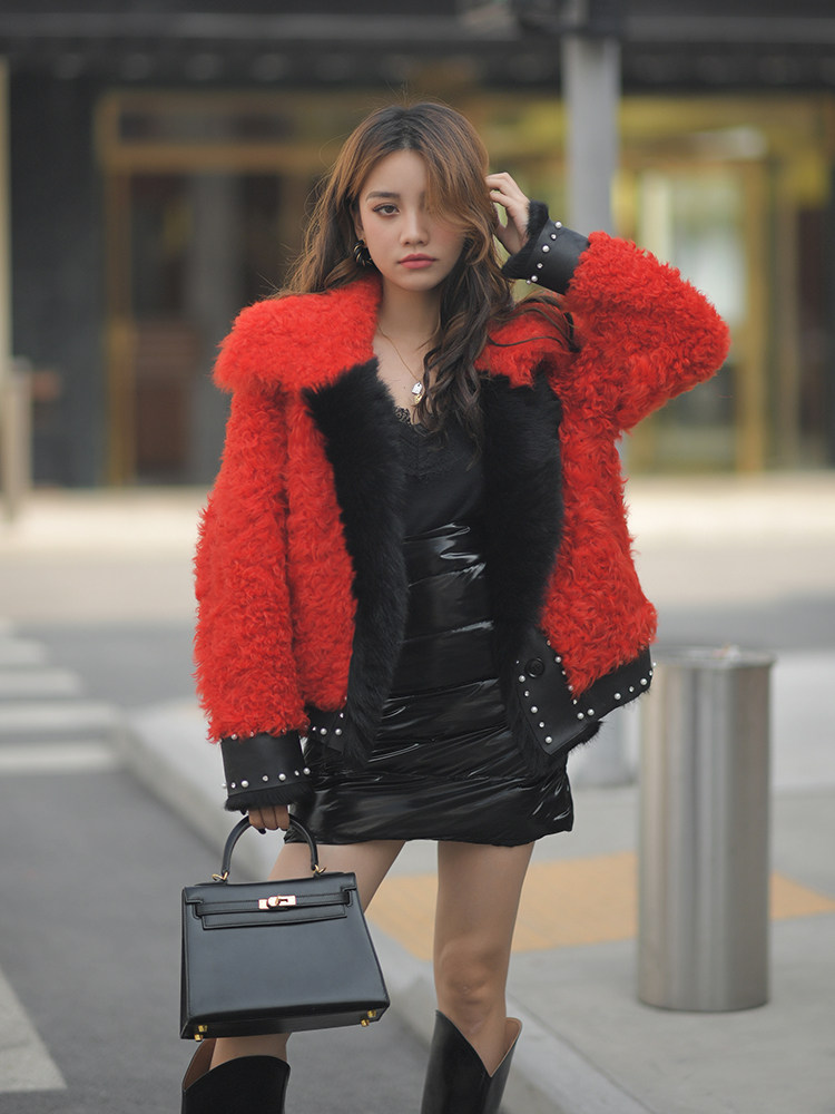 📚 can 羊毛短款皮草女复古托斯卡纳卷毛红色外套