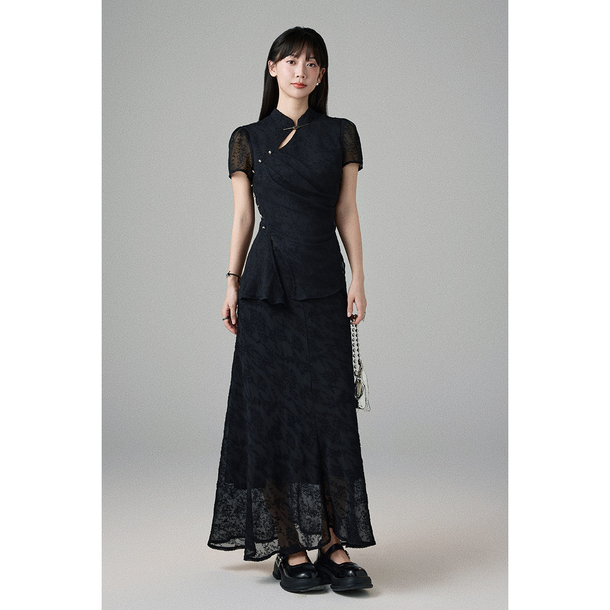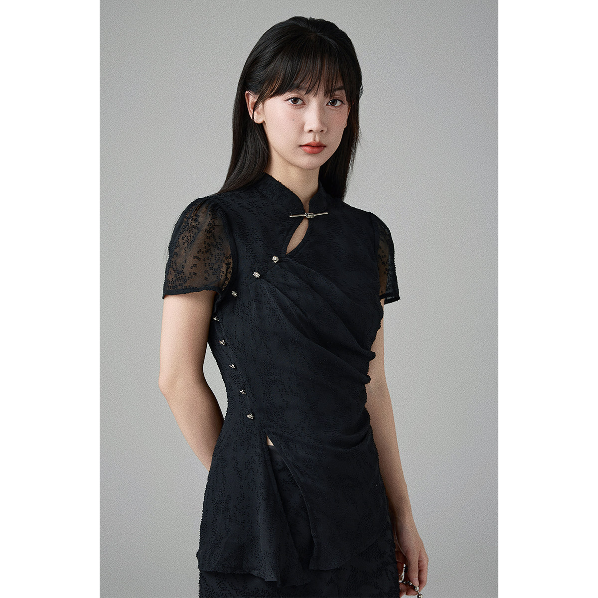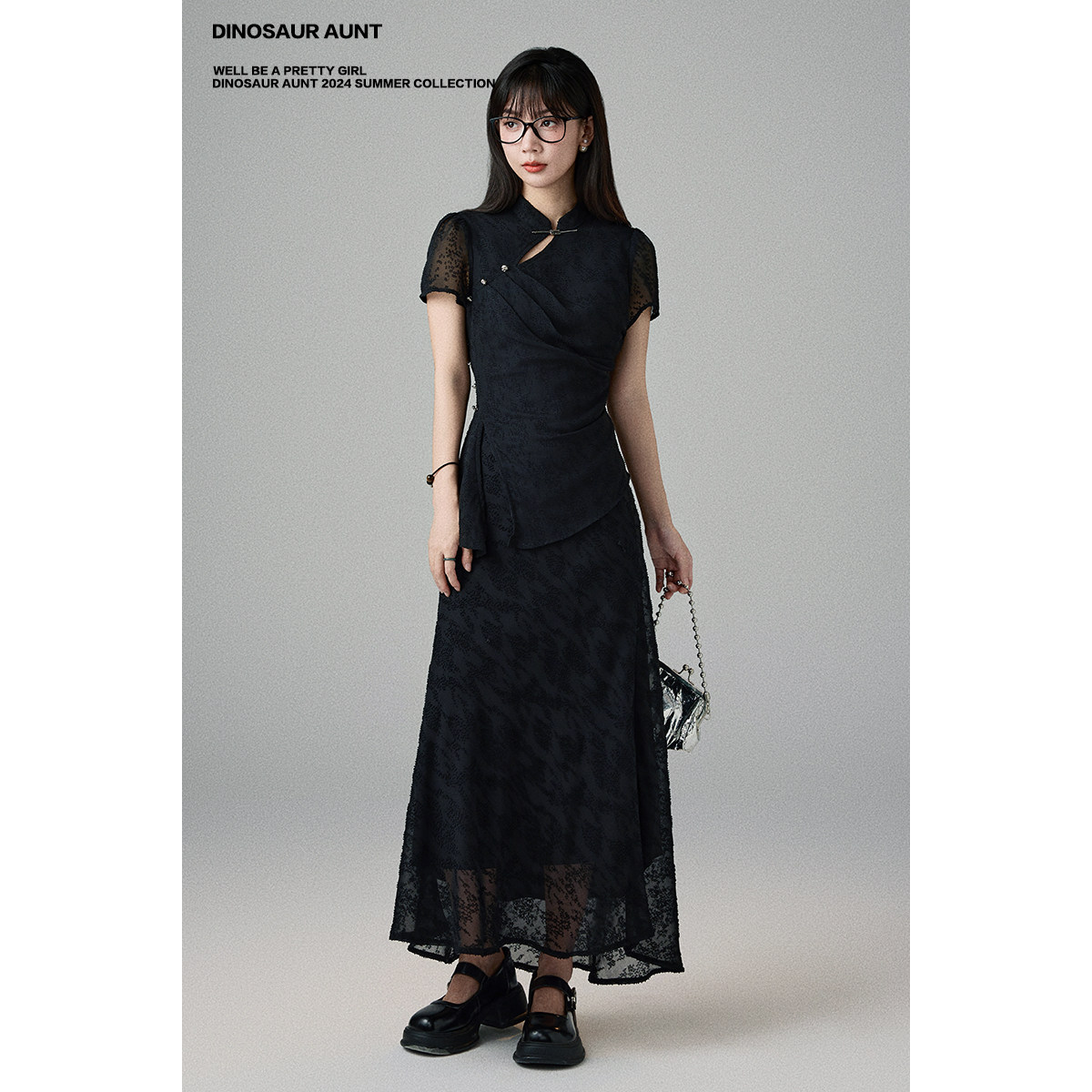 📚 DINOSAUR AUNT恐龙阿姨 24年春夏高级感新中式短袖褶皱国风裙