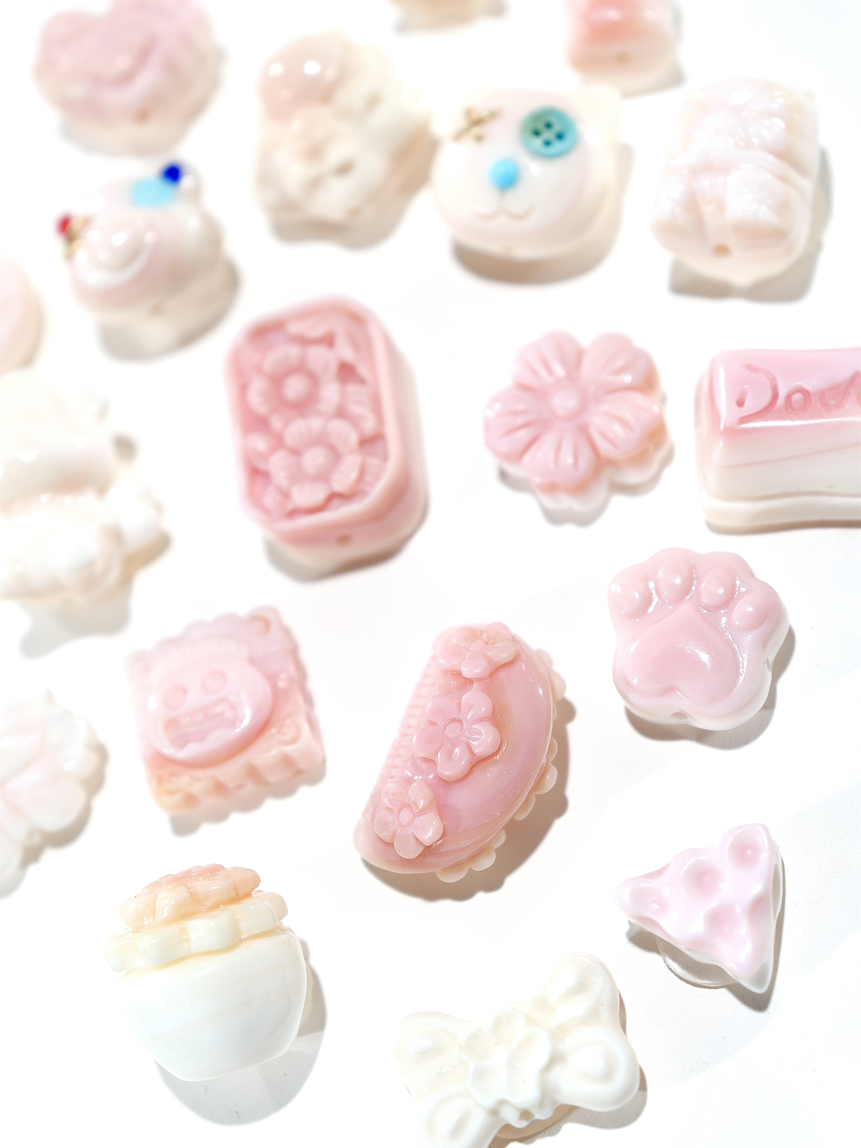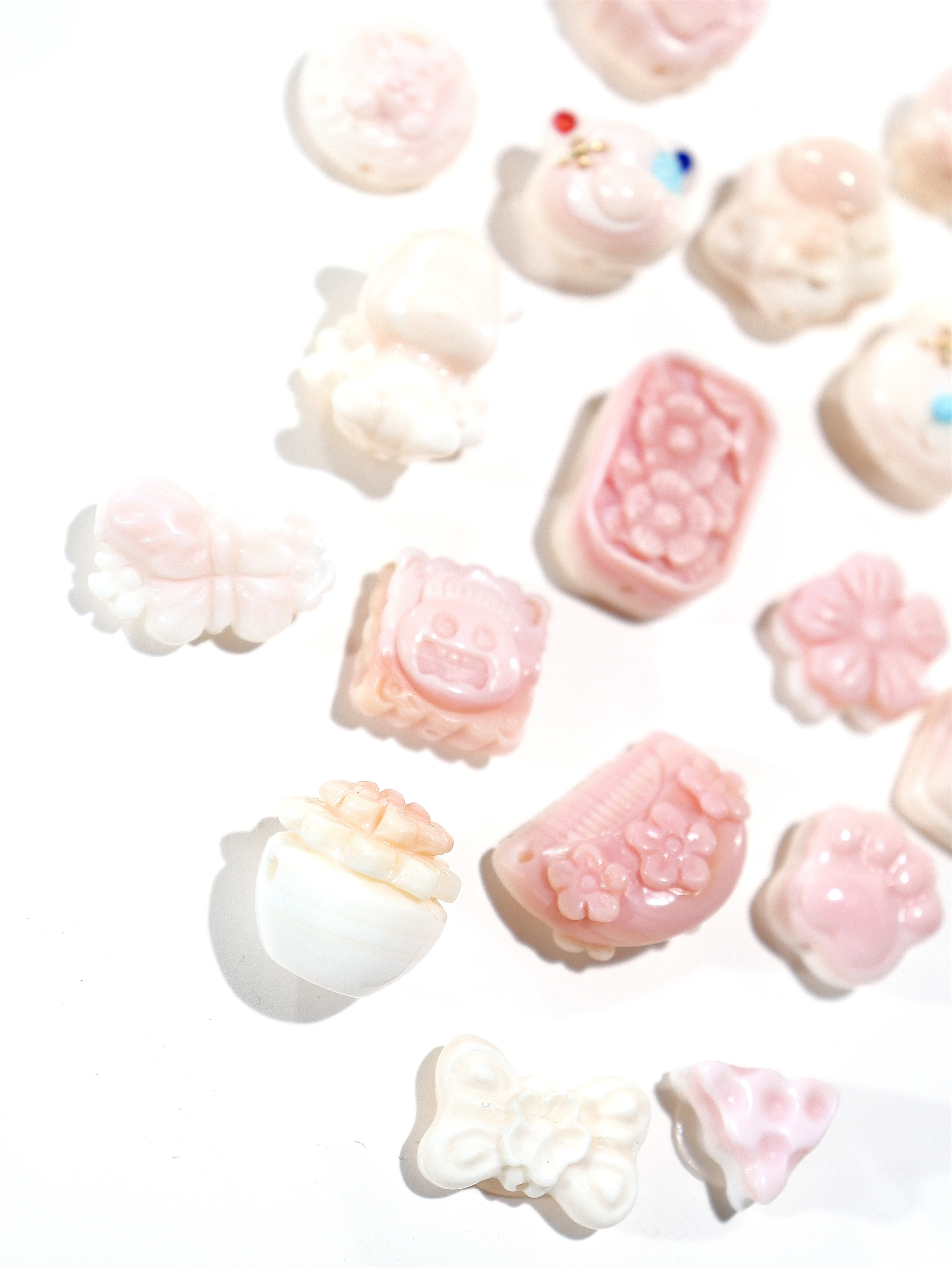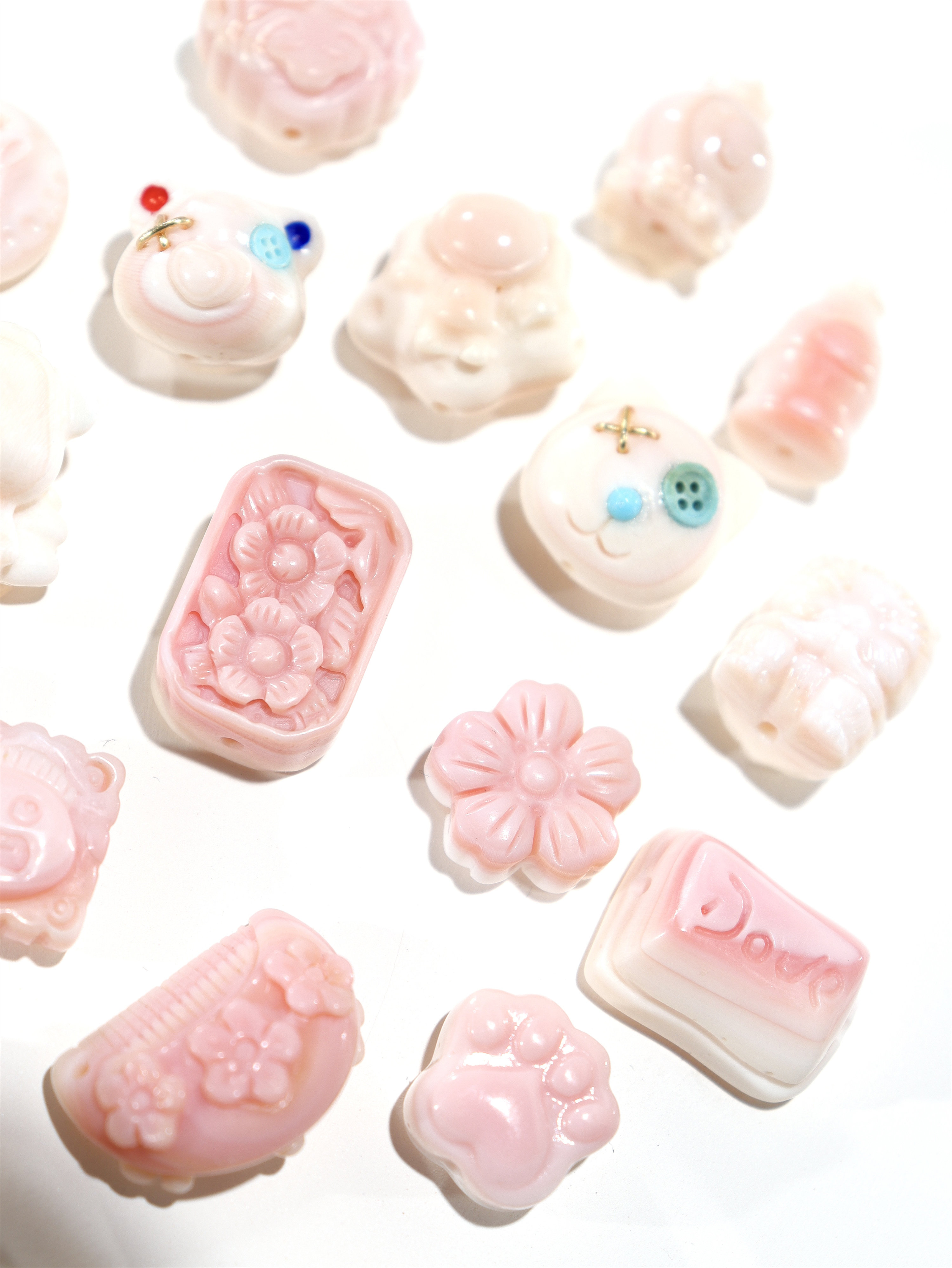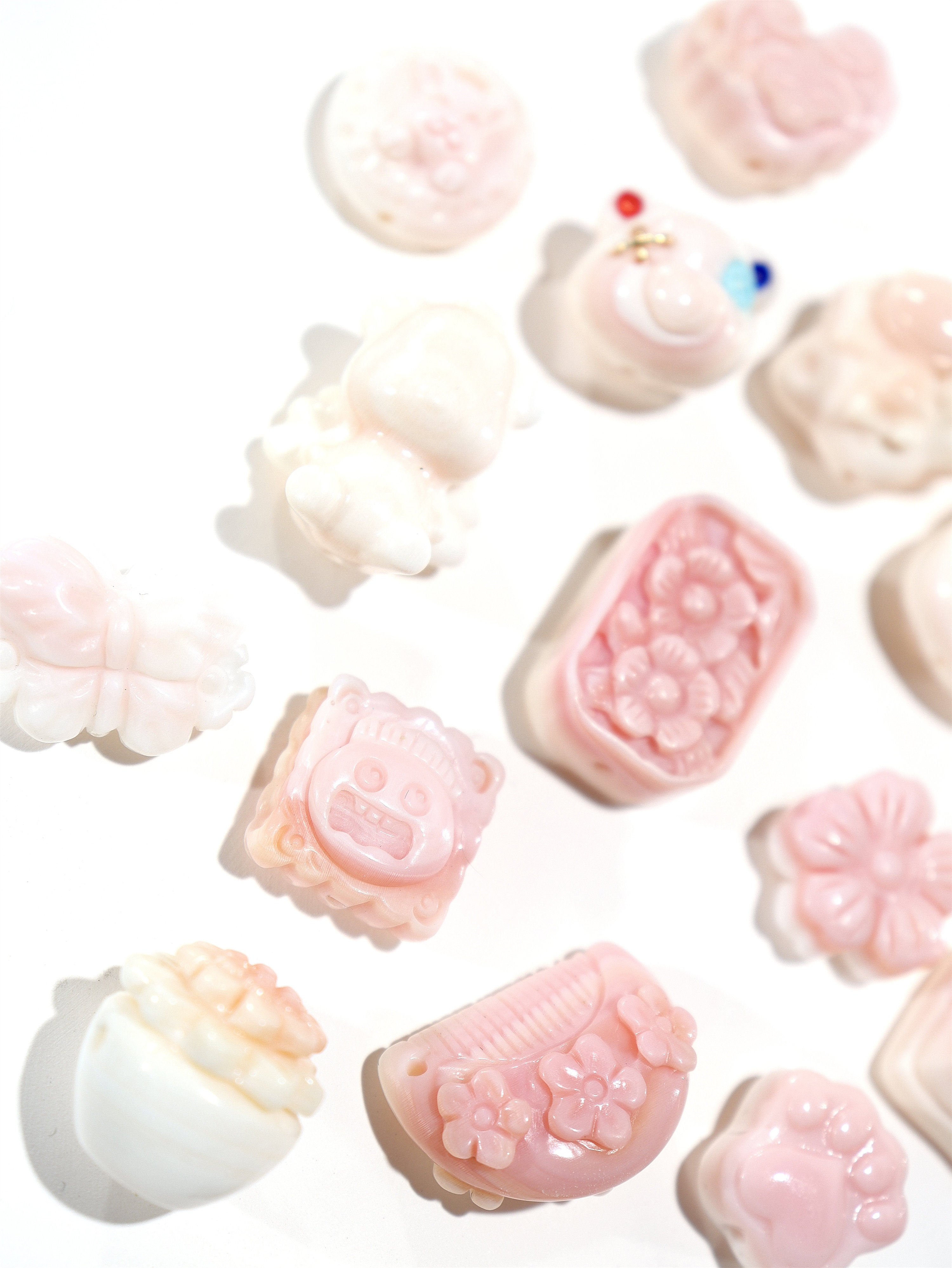 📚 元荷 女王贝粉贝胭脂DIY 雕刻件配饰成品 通孔吊坠挂件全家福文玩