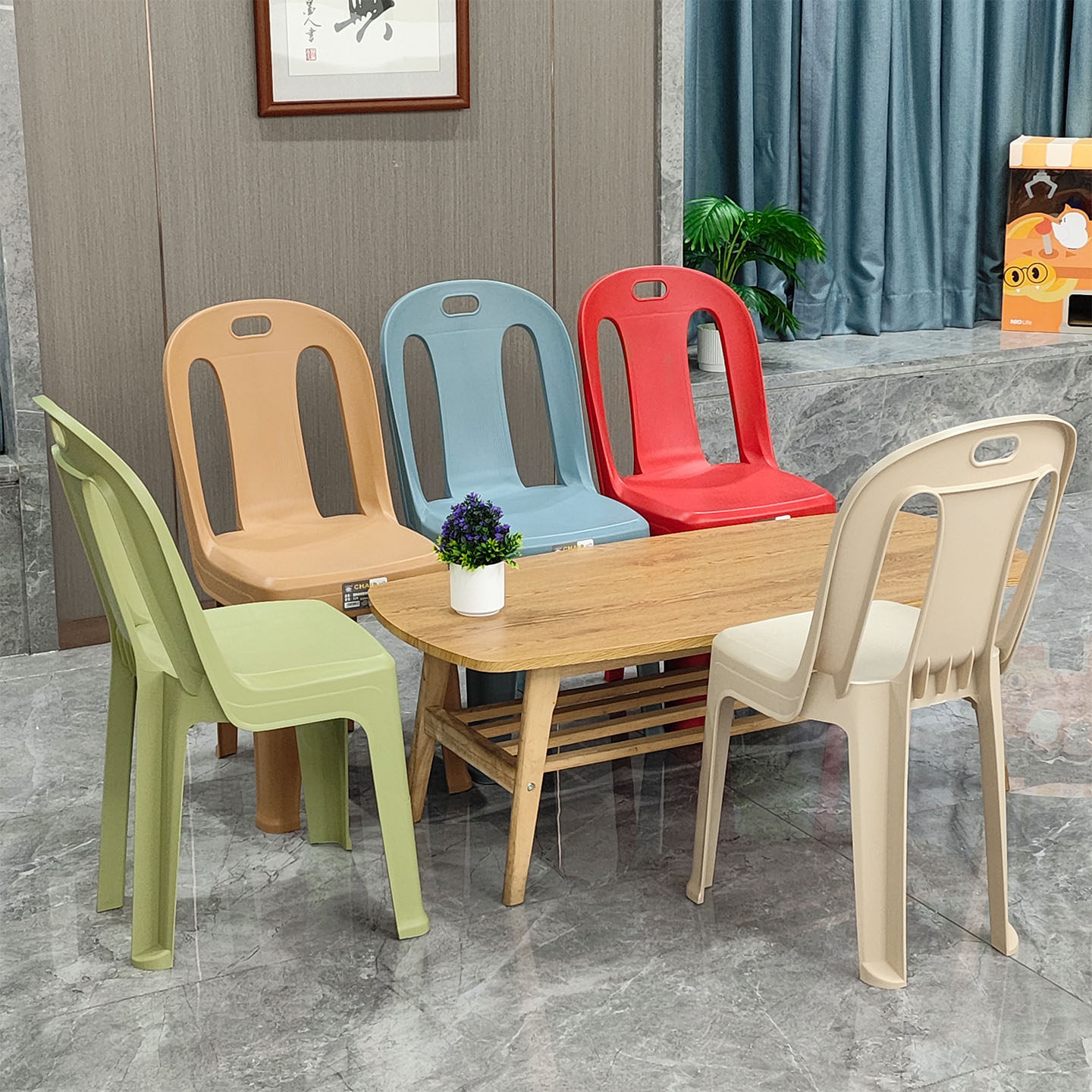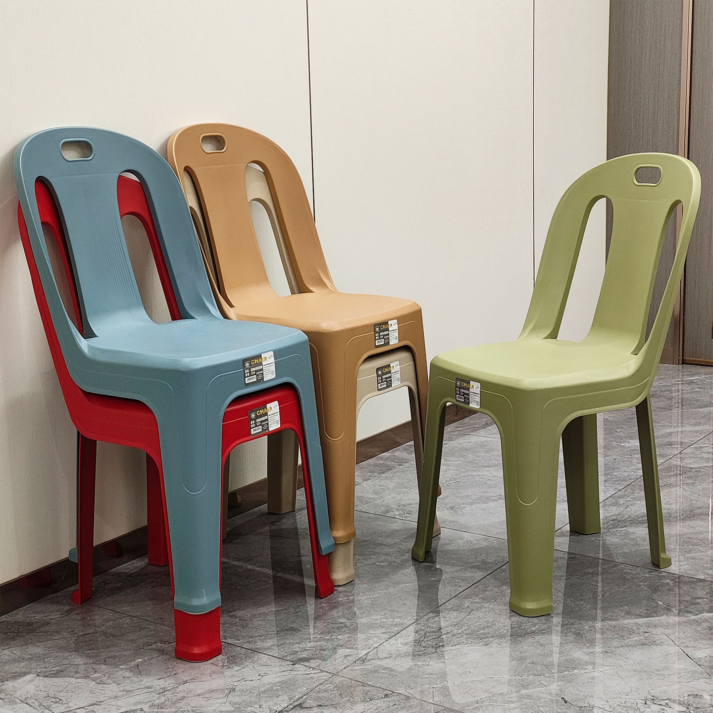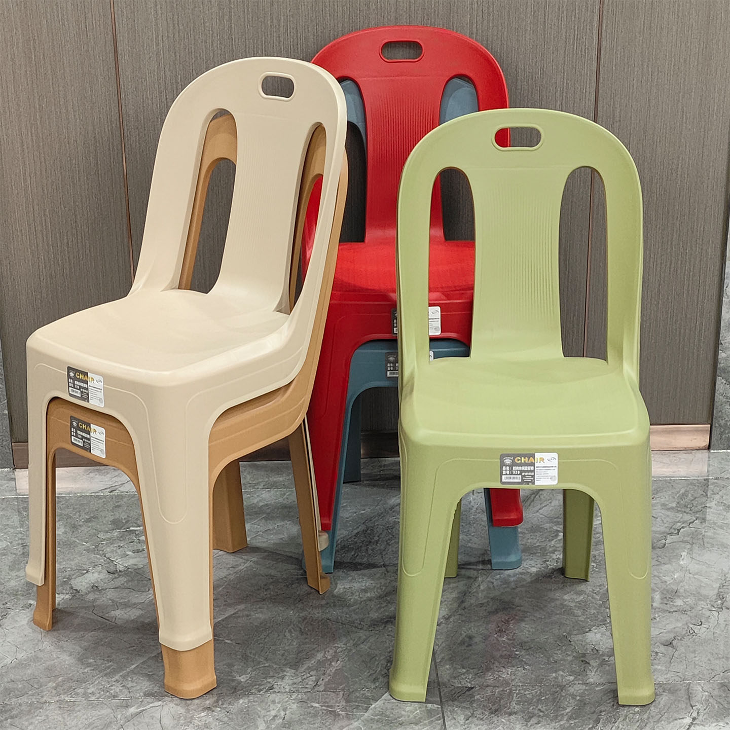 📚 极简塑料靠背椅餐厅防滑熟胶椅观众席椅可叠放户外美食街烧烤胶椅
