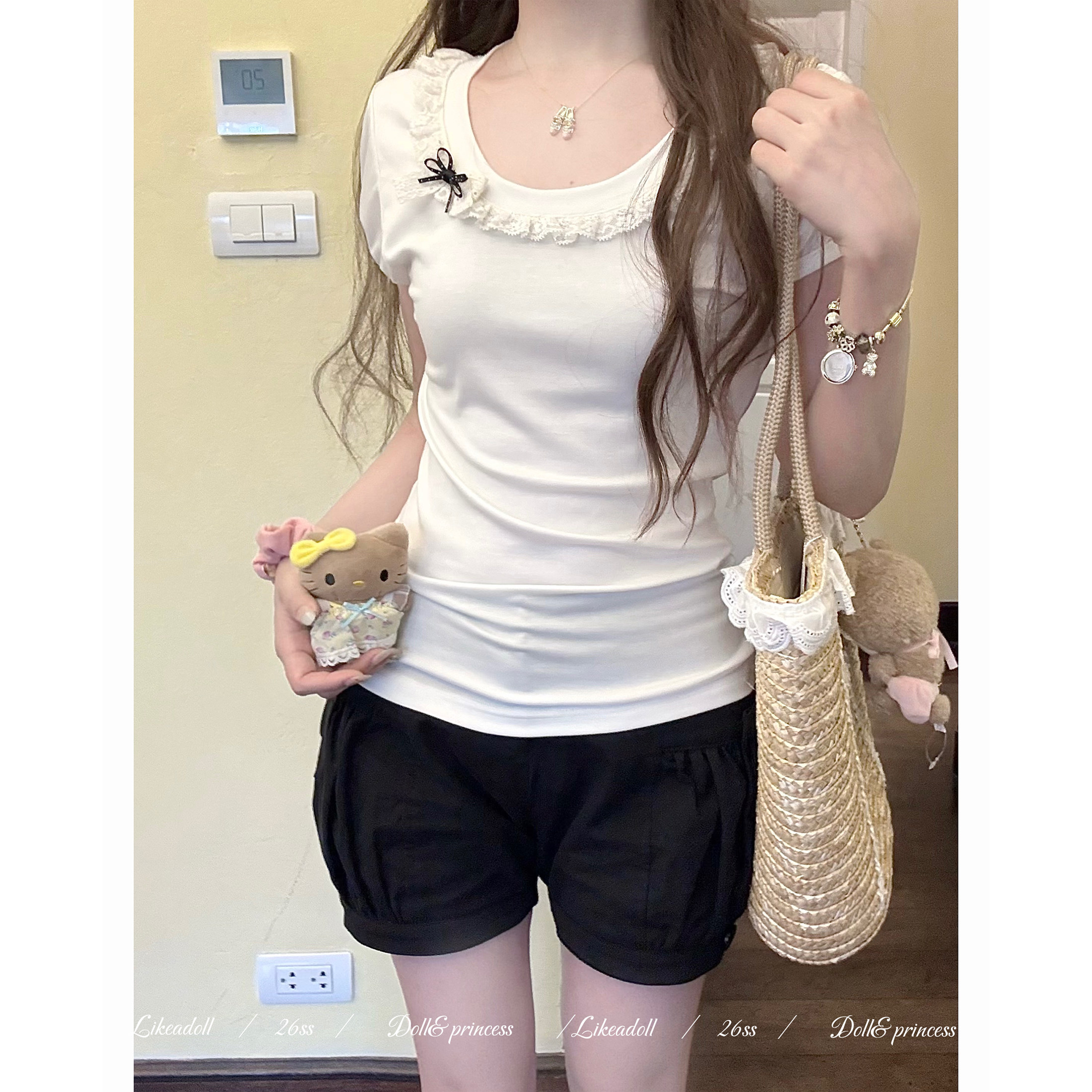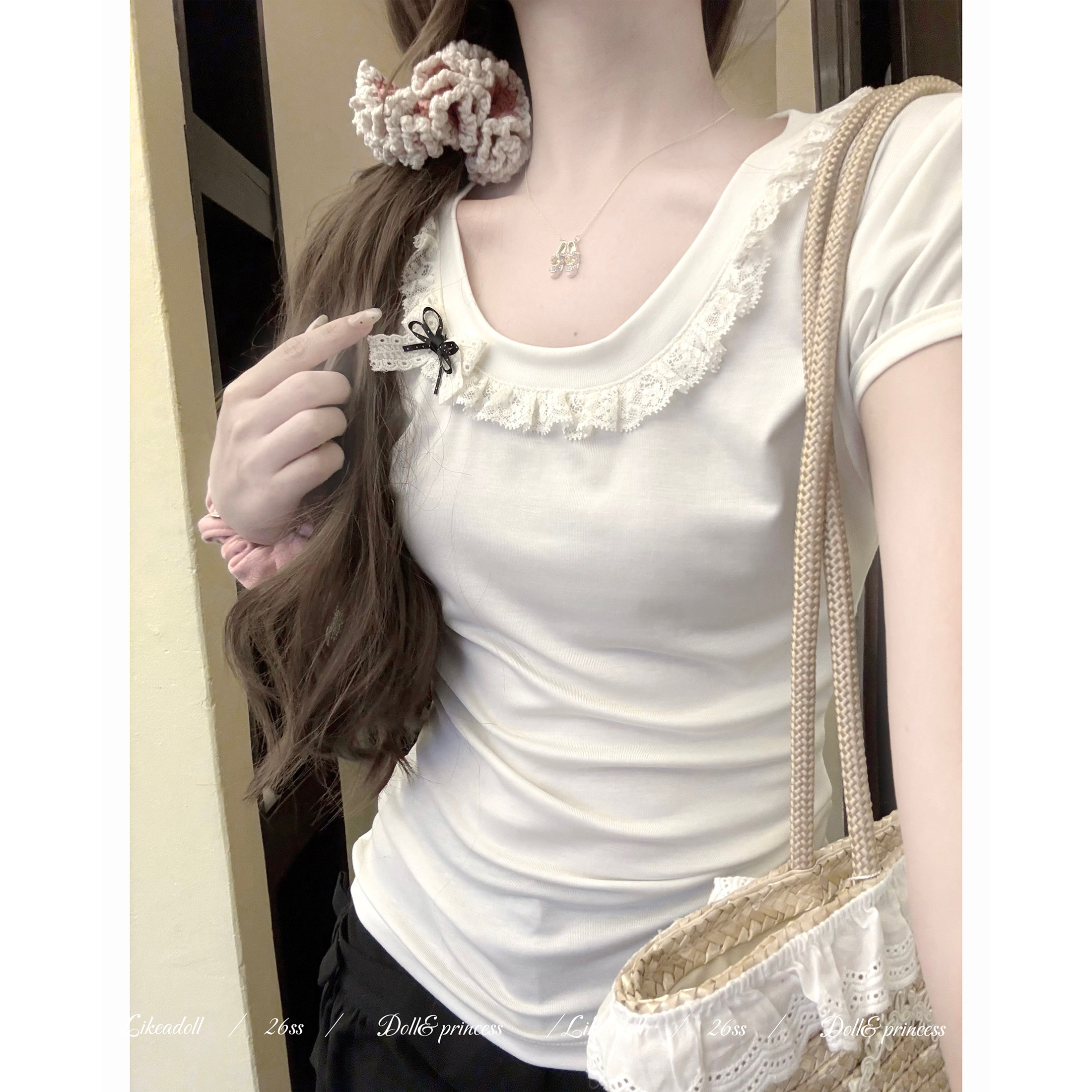 📚 Doll原创『塔塔蕾』95%莱赛尔天丝凉感微透修身T恤百搭圆领短袖