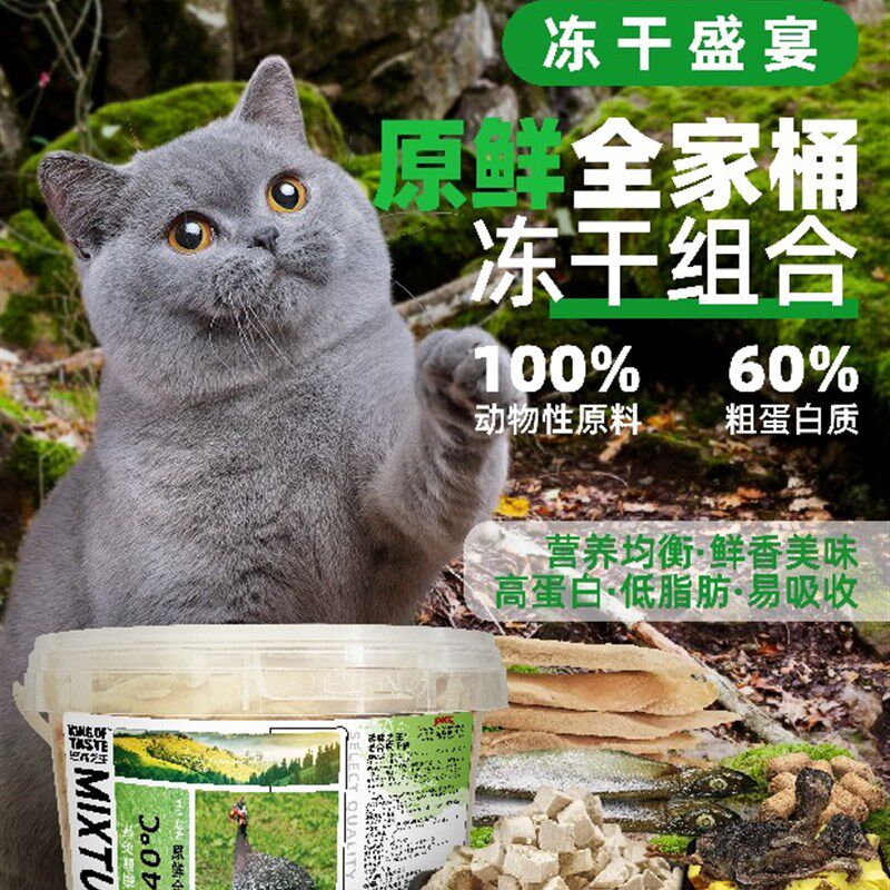 📚 珍味之王冻干全家桶犬猫通用鸭肉400 g+鸡肉450g混合大桶480g营养