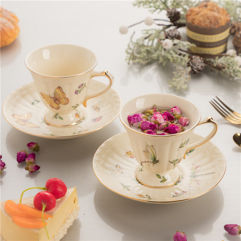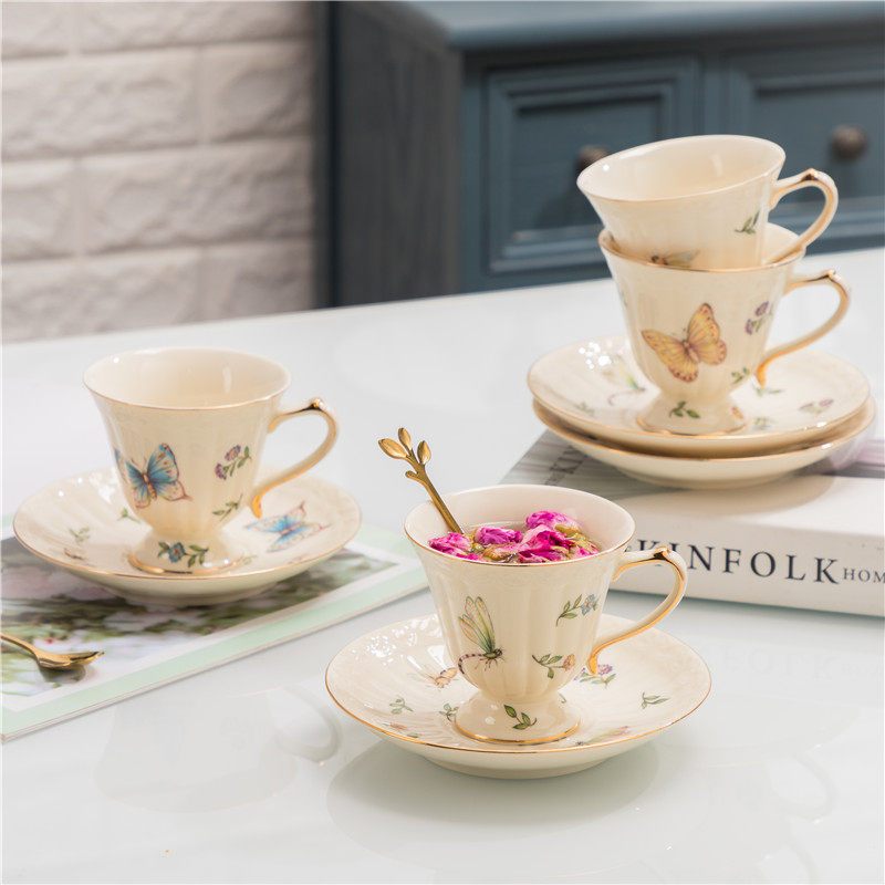 📚 精致咖啡杯碟陶瓷ins风家用欧式下午茶杯套装小轻奢蝴蝶杯子高档