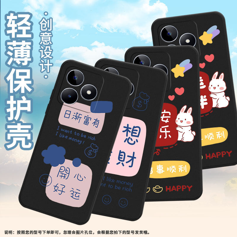 📚 适用realme真我c11手机壳c75/c55/c53轻薄c12只想发财c61男女款c17搞钱要紧c33开心好运c15耐脏c65好运相伴