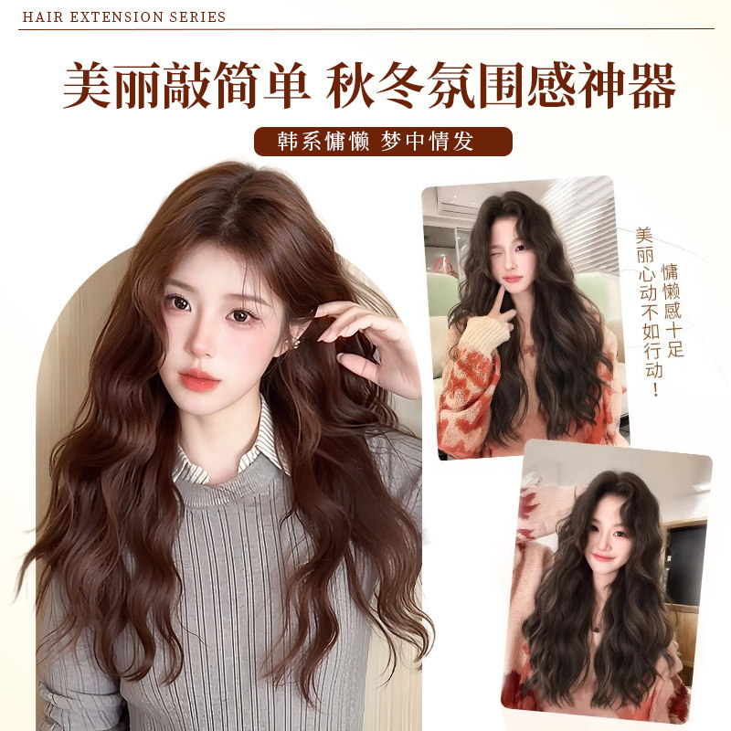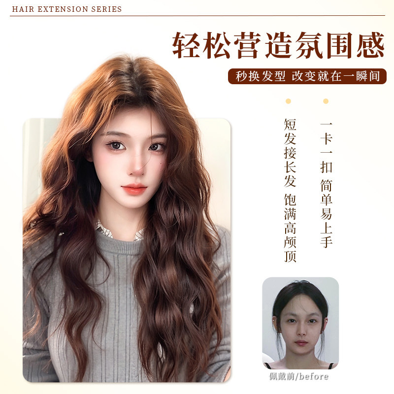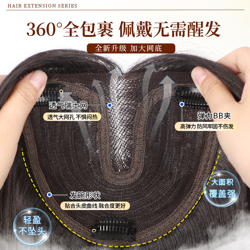 📚 不用戴发网假发女片头顶高颅顶增发量自然蓬松大波浪长卷发补发片