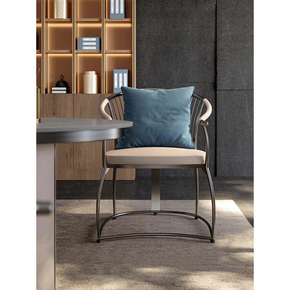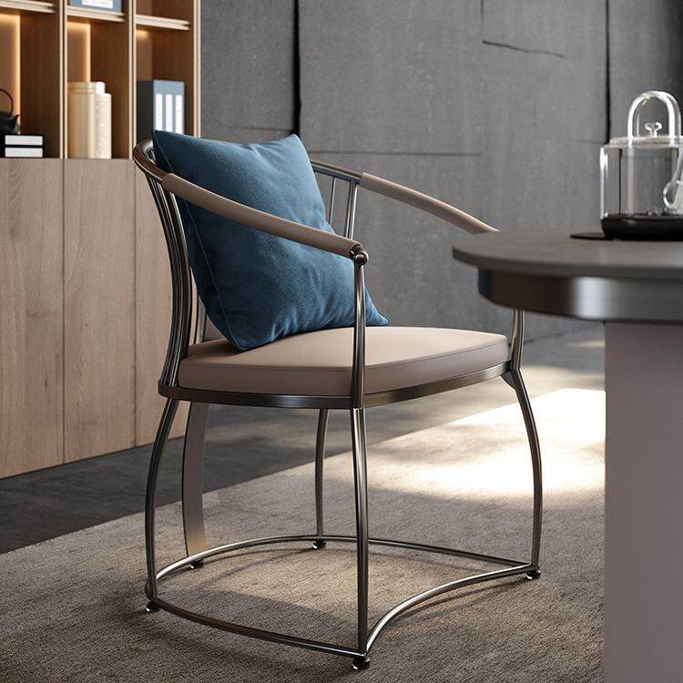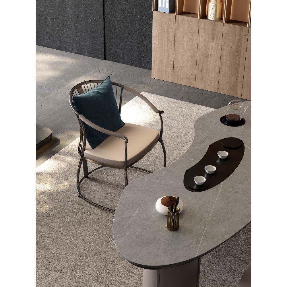 📚 轻奢现代茶桌椅主人茶椅围椅设计师别墅不锈钢家用泡茶台太师皮椅
