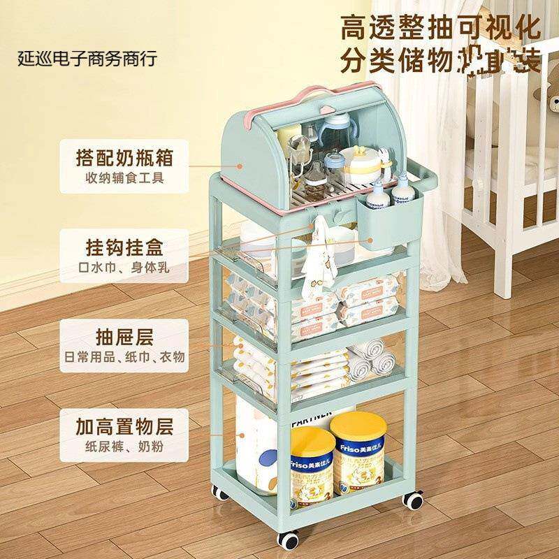 📚 婴头儿用品置物儿宝架新生宝物品小推车喂养台床柜延巡电子多层收
