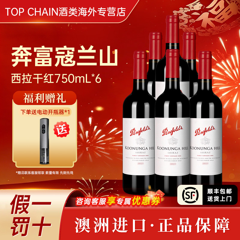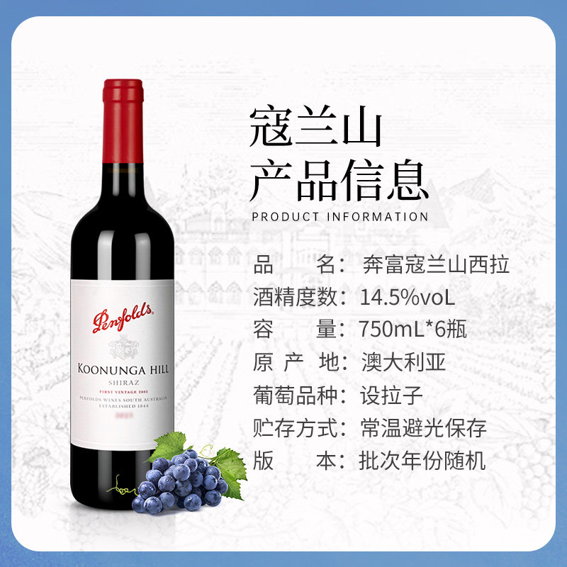 📚 奔富寇兰山西拉750ml干红葡萄酒澳洲进口红酒宴请佳礼木塞6瓶