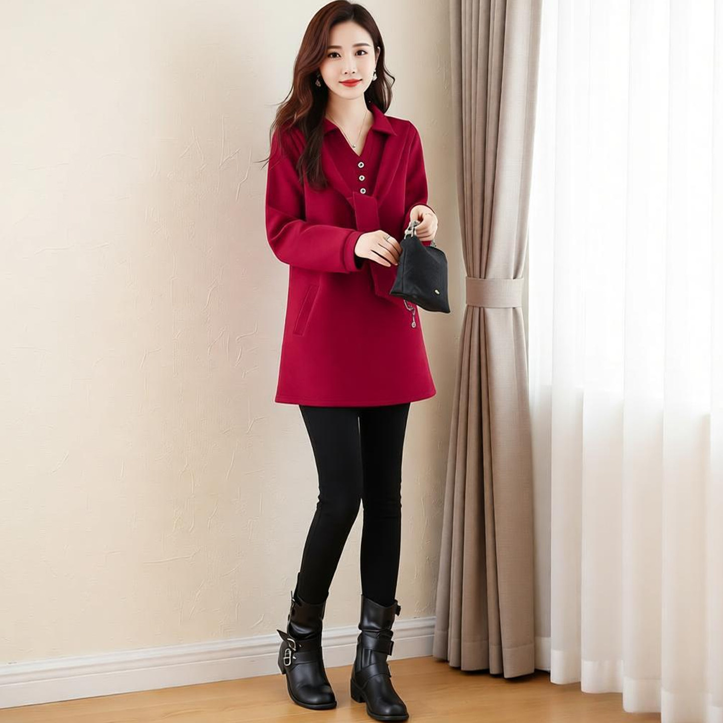 洋气中长加厚上衣春秋