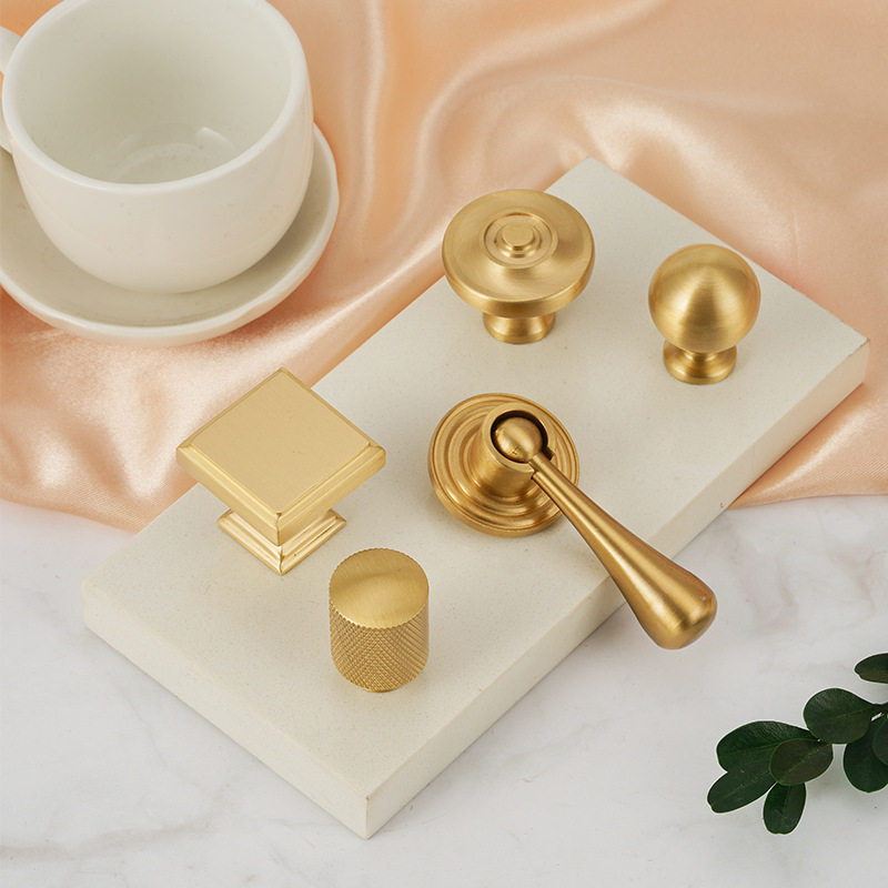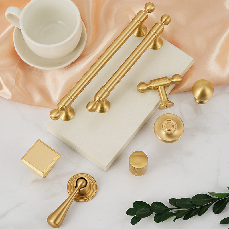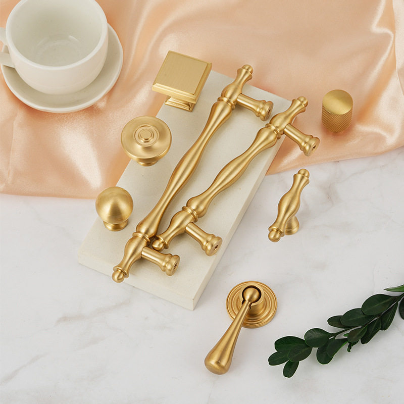 📚 法式轻奢纯黄铜实心明装拉手橱柜抽屉金色单孔小拉手衣柜门把手