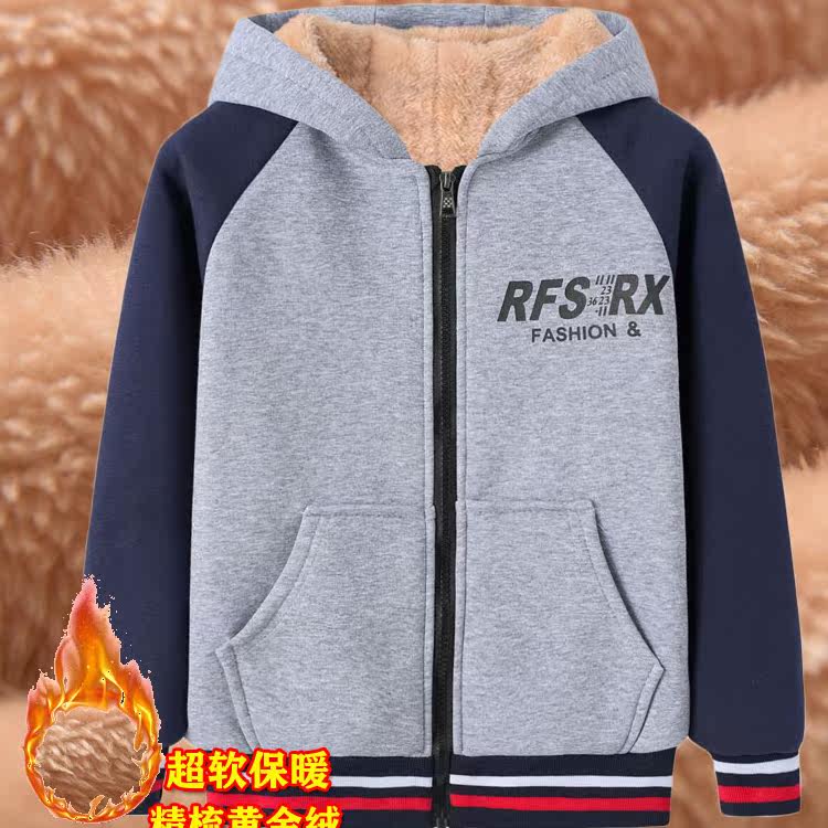 📚 2025新款男中大童小孩秋冬款加厚外套卫衣开衫连帽冬季装纯棉上衣