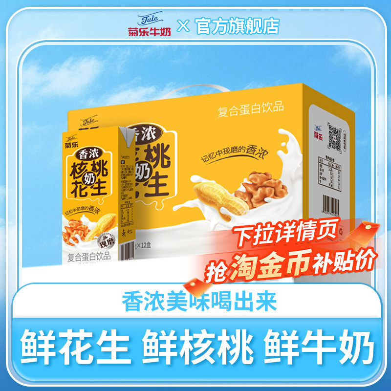 📚 菊乐旗舰店核桃花生牛奶复合植物蛋白饮品早餐整箱255g*12盒装